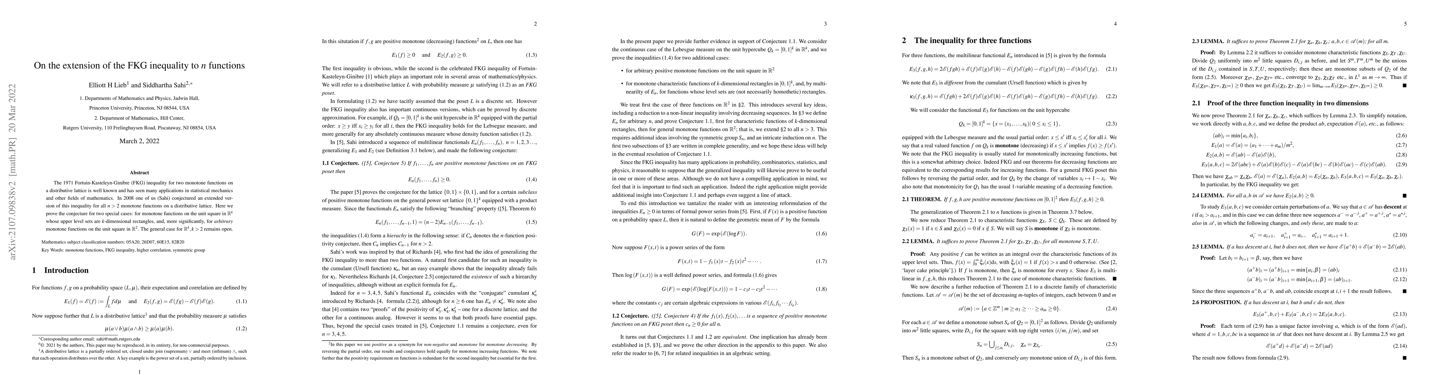 Researchers prove a strengthened version of the FKG inequality for two special cases: monotone functions on the unit square in ${rac{R}^2}$, extending its applications to statistical mechanics and other fields.