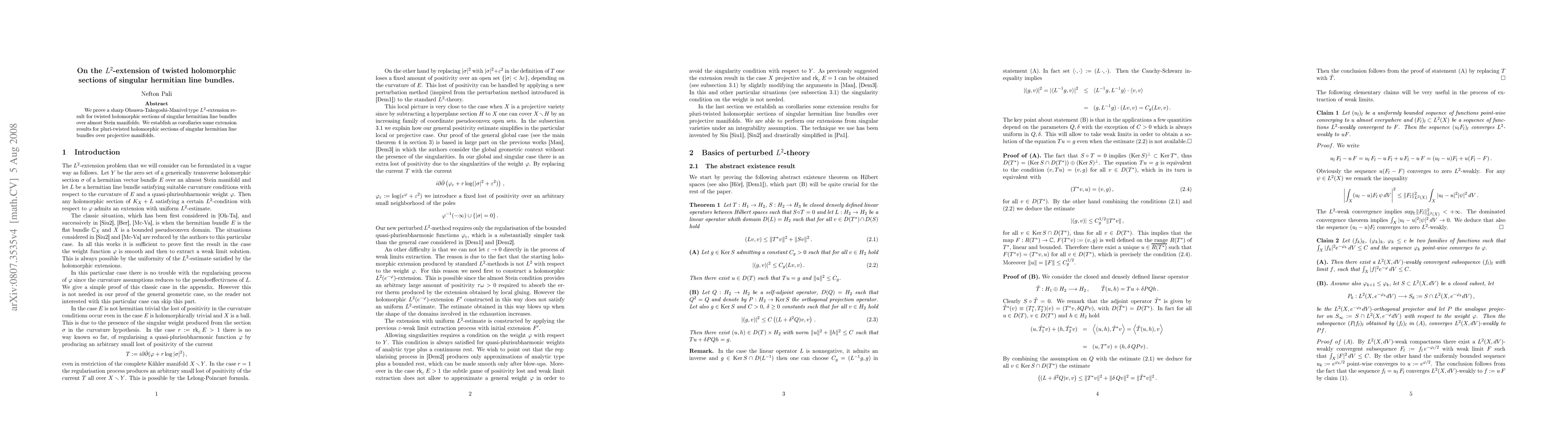 Summary: This paper proves a sharp extension result for twisted holomorphic sections of singular hermitian line bundles on almost Stein manifolds, and derives extension results for pluri-twisted sections on projective manifolds as corollaries.