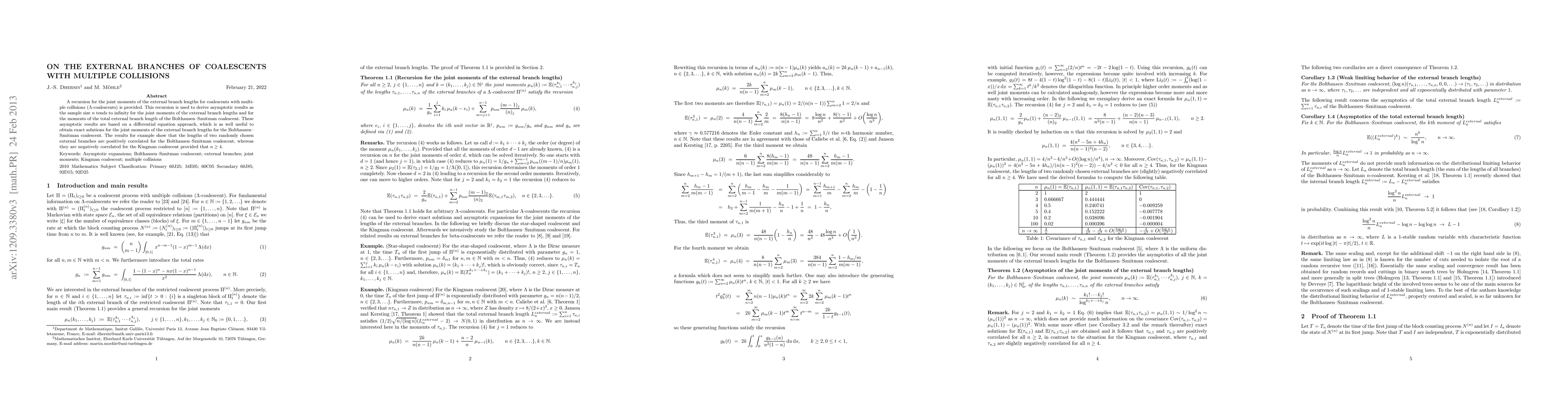 A recursion for the joint moments of the external branch lengths for coalescents with multiple collisions ($\Lambda$-coalescents) is provided. This recursion is used to derive asymptotic results as the sample size $n$ tends to infinity for the joint moments of the external branch lengths and for the moments of the total external branch length of the Bolthausen-Sznitman coalescent. These asymptotic results are based on a differential equation approach, which is as well useful to obtain exact solutions for the joint moments of the external branch lengths for the Bolthausen-Sznitman coalescent. The results for example show that the lengths of two randomly chosen external branches are positively correlated for the Bolthausen--Sznitman coalescent, whereas they are negatively correlated for the Kingman coalescent provided that $n\ge 4$.