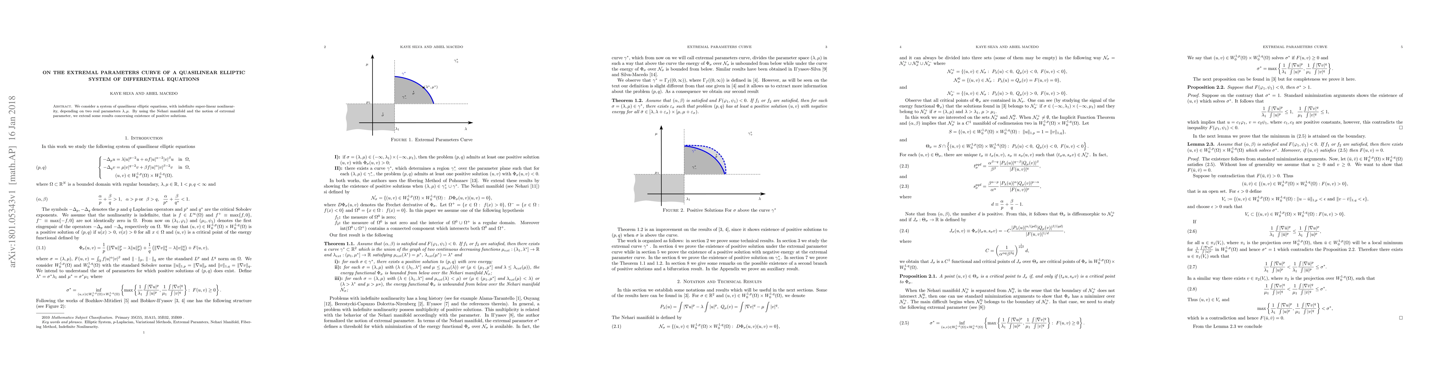 Summary: This paper explores a system of quasilinear elliptic differential equations with indefinite super-linear nonlinearity, focusing on the existence of positive solutions via the Nehari manifold and extremal parameters $\lambda$ and $\mu$. It extends previous results in this area.
