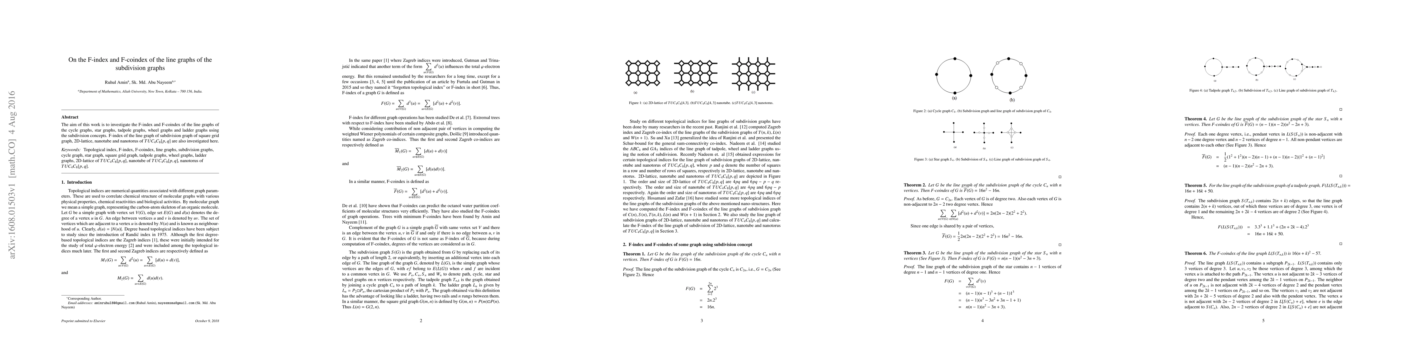 Researchers investigated the F-index and F-coindex of line graphs generated from subdivision concepts for various graph types, including cycle, star, tadpole, wheel, ladder, nanotube, and nanotorus graphs.