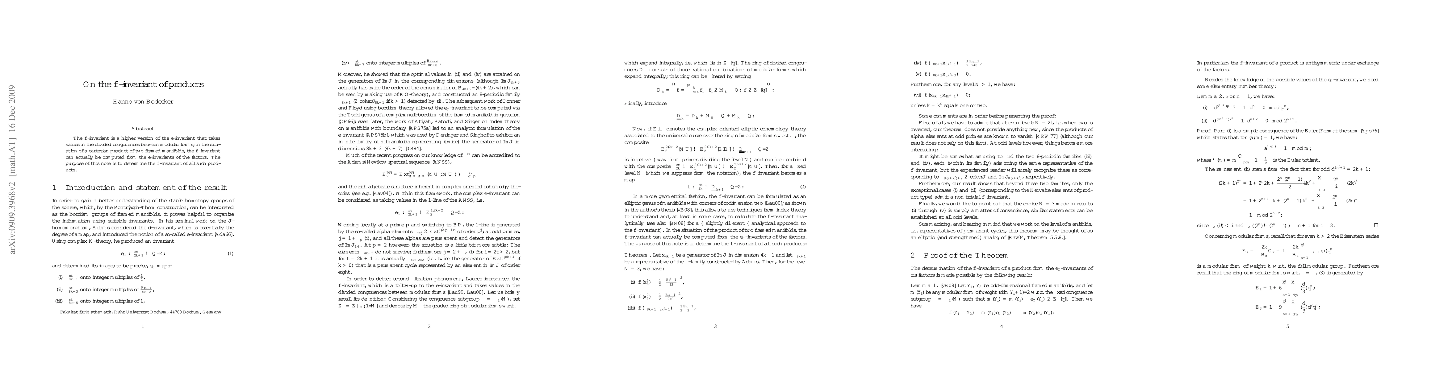 This research paper investigates the f-invariant of products in modular forms, finding that it can be computed from the e-invariants of factor manifolds.