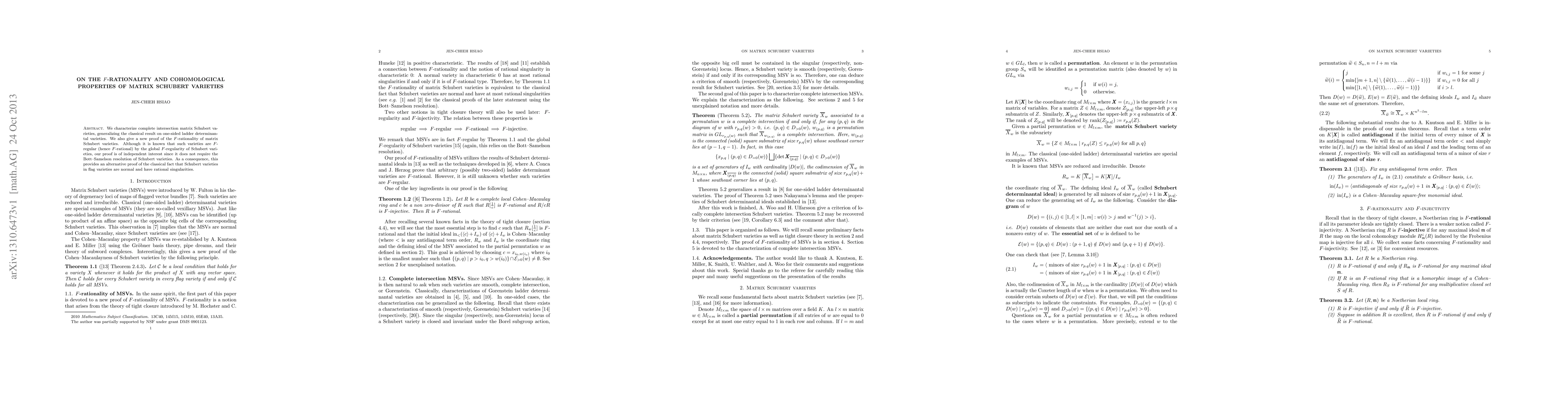 This paper characterizes complete intersection matrix Schubert varieties and provides a new proof of their F-rationality, independent of the Bott-Samelson resolution. It also offers an alternative proof for the normality and rational singularities of Schubert varieties in flag varieties.