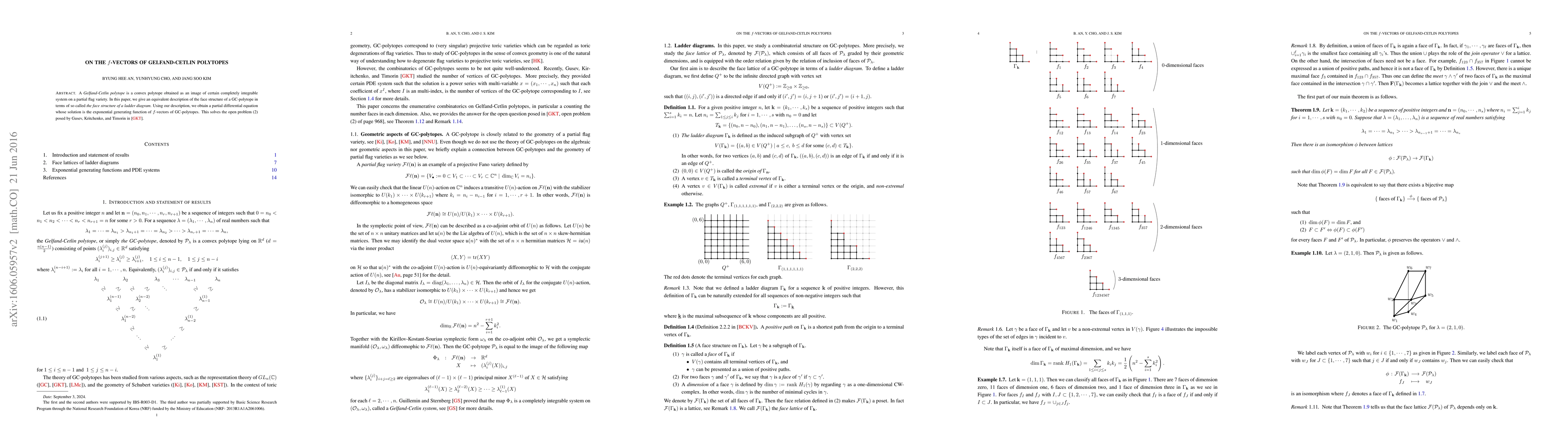 A Gelfand-Cetlin polytope is a convex polytope obtained as an image of certain completely integrable system on a partial flag variety. In this paper, we give an equivalent description of the face structure of a GC-polytope in terms of so called the face structure of a ladder diagram. Using our description, we obtain a partial differential equation whose solution is the exponential generating function of f-vectors of GC-polytopes. This solves the open problem (2) posed by Gusev, Kritchenko, and Timorin in [GKT].