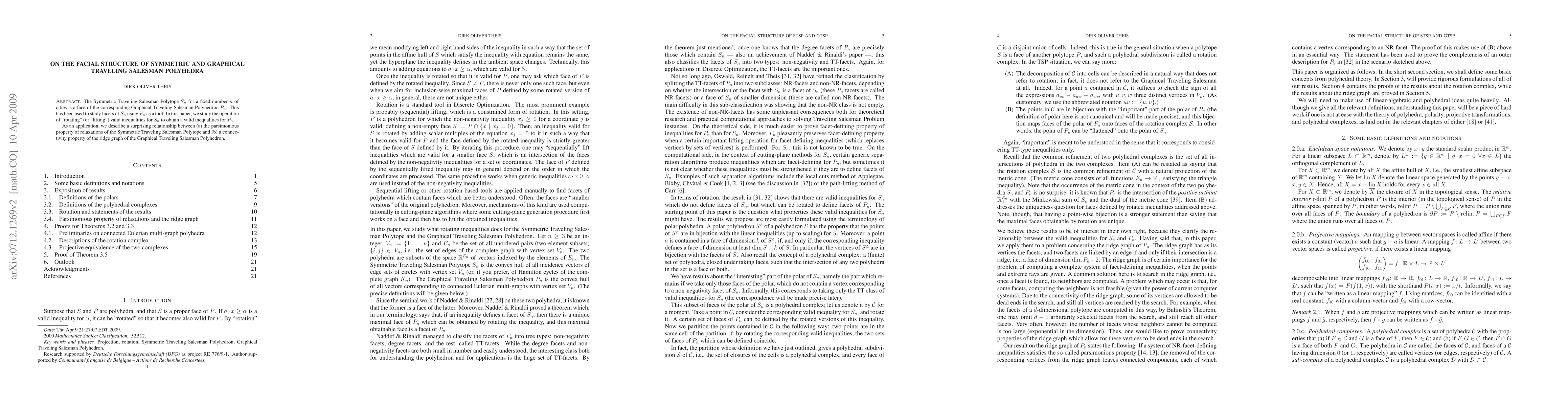 The Symmetric Traveling Salesman Polytope $S_n$ for a fixed number $n$ of cities is a face of the corresponding Graphical Traveling Salesman Polyhedron $P_n$. This has been used to study facets of $S_n$ using $P_n$ as a tool. In this paper, we study the operation of "rotating" (or "lifting") valid inequalities for $S_n$ to obtain a valid inequalities for $P_n$. As an application, we describe a surprising relationship between (a) the parsimonious property of relaxations of the Symmetric Traveling Salesman Polytope and (b) a connectivity property of the ridge graph of the Graphical Traveling Salesman Polyhedron.