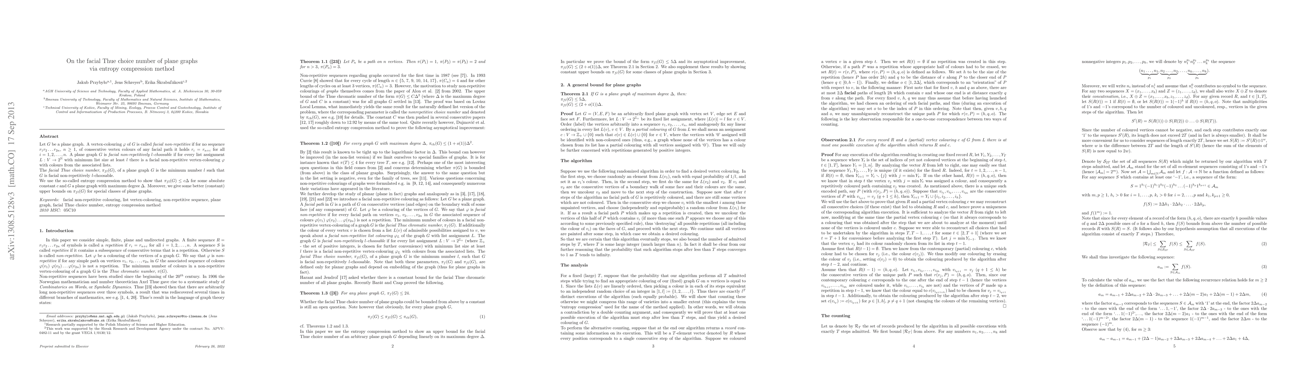 A research paper shows that the facial Thue choice number of plane graphs is bounded above by a constant times their maximum degree, with special classes having better upper bounds.