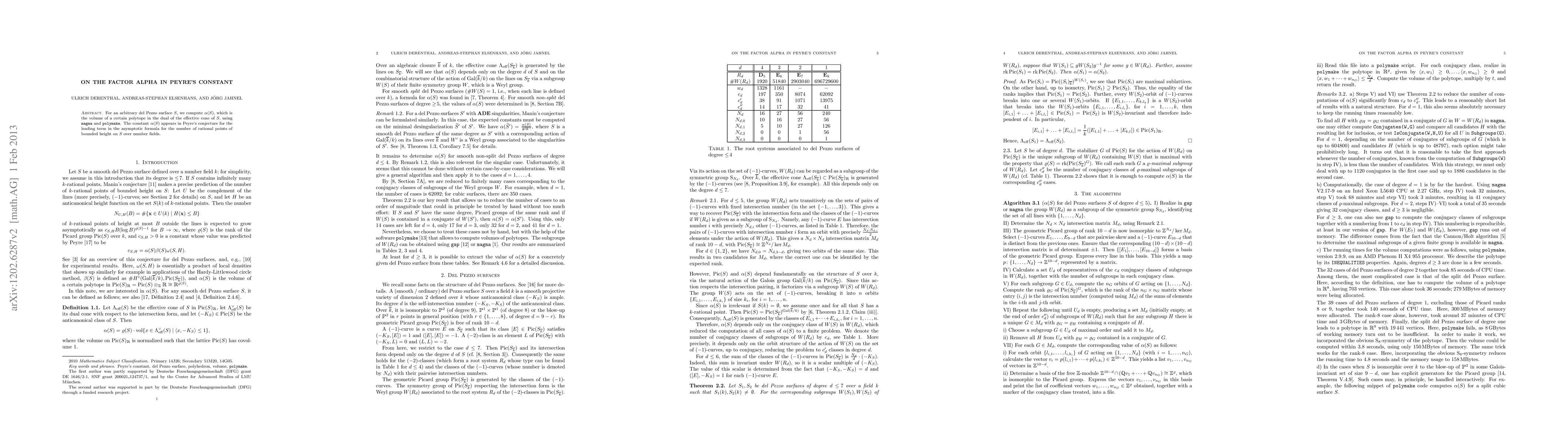 For an arbitrary del Pezzo surface S, we compute alpha(S), which is the volume of a certain polytope in the dual of the effective cone of S, using Magma and Polymake. The constant alpha(S) appears in Peyre's conjecture for the leading term in the asymptotic formula for the number of rational points of bounded height on S over number fields.