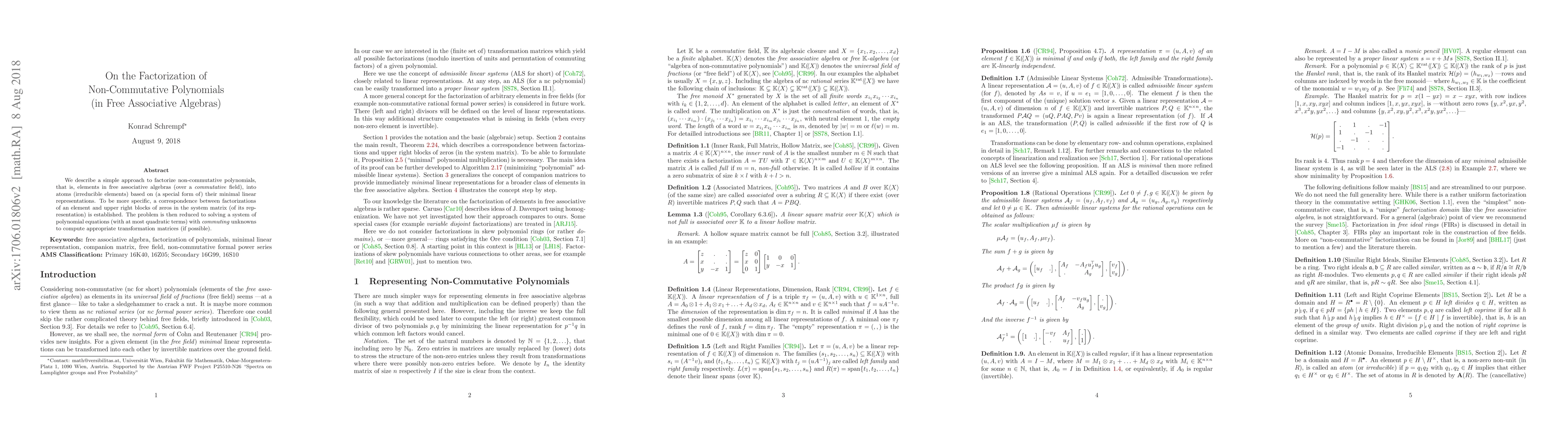 We describe a simple approach to factorize non-commutative (nc) polynomials, that is, elements in free associative algebras (over a commutative field), into atoms (irreducible elements) based on (a special form of) their minimal linear representations. To be more specific, a correspondence between factorizations of an element and upper right blocks of zeros in the system matrix (of its representation) is established. The problem is then reduced to solving a system of polynomial equations (with at most quadratic terms) with commuting unknowns to compute appropriate transformation matrices (if possible).