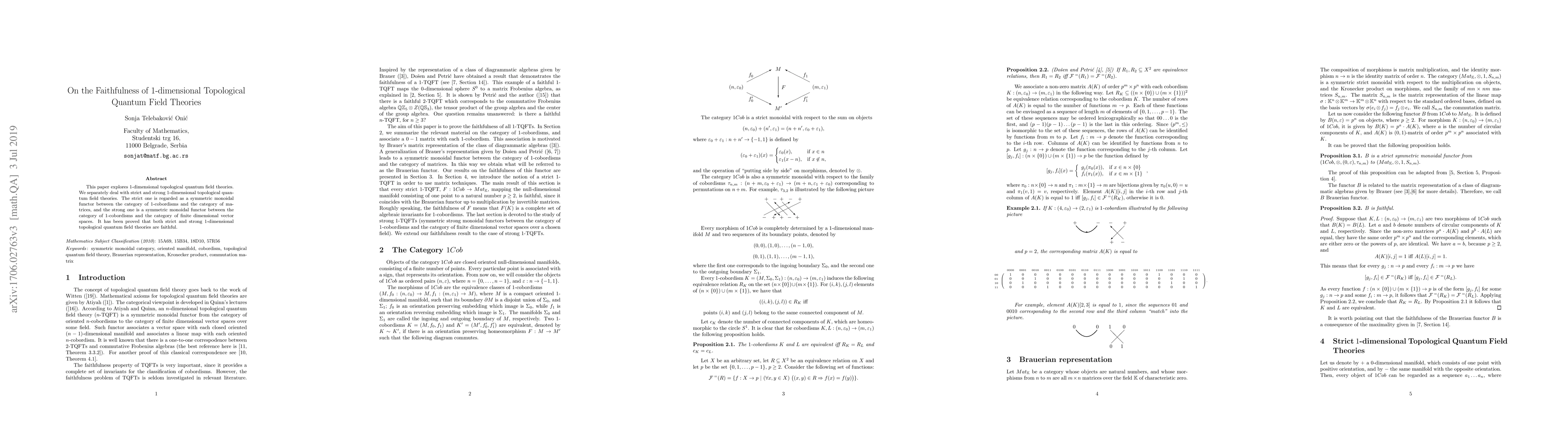 This paper investigates the faithfulness of strict and strong 1-dimensional topological quantum field theories, demonstrating that both types faithfully represent their respective categories of 1-cobordisms through symmetric monoidal functors.