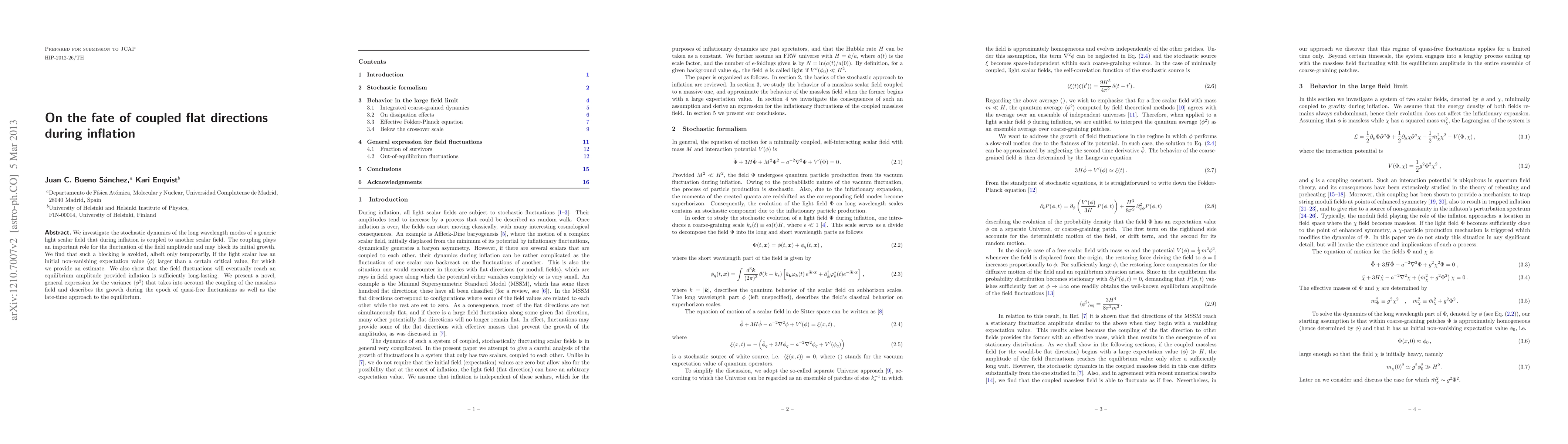 We investigate the stochastic dynamics of the long wavelength modes of a generic light scalar field that during inflation is coupled to another scalar field. The coupling plays an important role for the fluctuation of the field amplitude and may block its initial growth. We find that such a blocking is avoided, albeit only temporarily, if the light scalar has an initial non-vanishing expectation value <\phi> larger than a certain critical value, for which we provide an estimate. We also show that the field fluctuations will eventually reach an equilibrium amplitude provided inflation is sufficiently long-lasting. We present a novel, general expression for the variance <\phi^2> that takes into account the coupling of the massless field and describes the growth during the epoch of quasi-free fluctuations as well as the late-time approach to the equilibrium.
