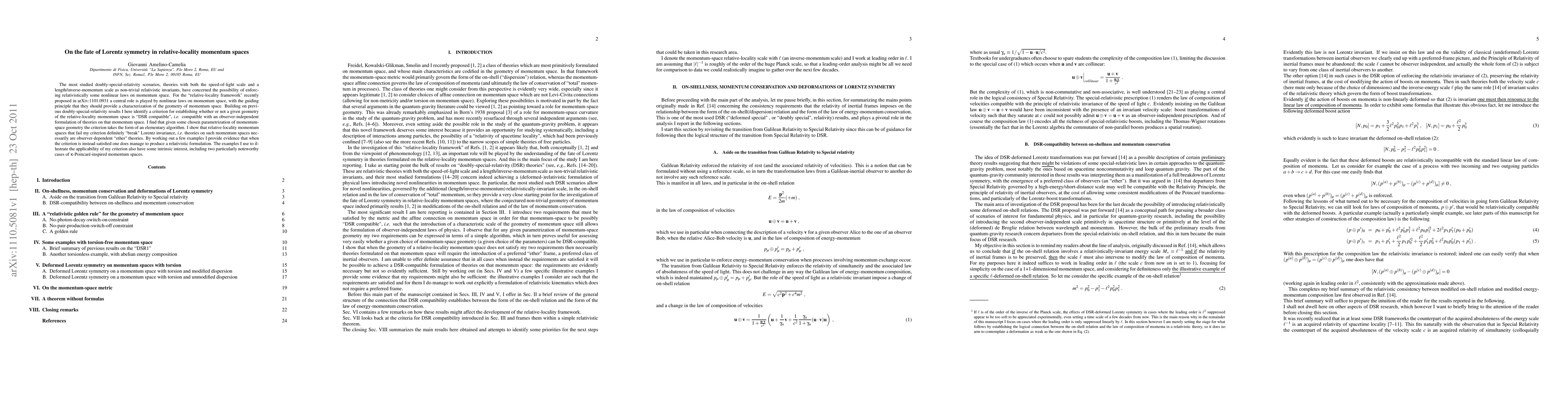 This paper explores the compatibility of relative-locality momentum spaces with doubly-special-relativity (DSR) and Lorentz symmetry. It proposes a criterion and algorithm to determine if a given momentum space geometry is DSR compatible, showing that failure indicates a breakdown of Lorentz invariance, while success allows for a relativistic formulation.