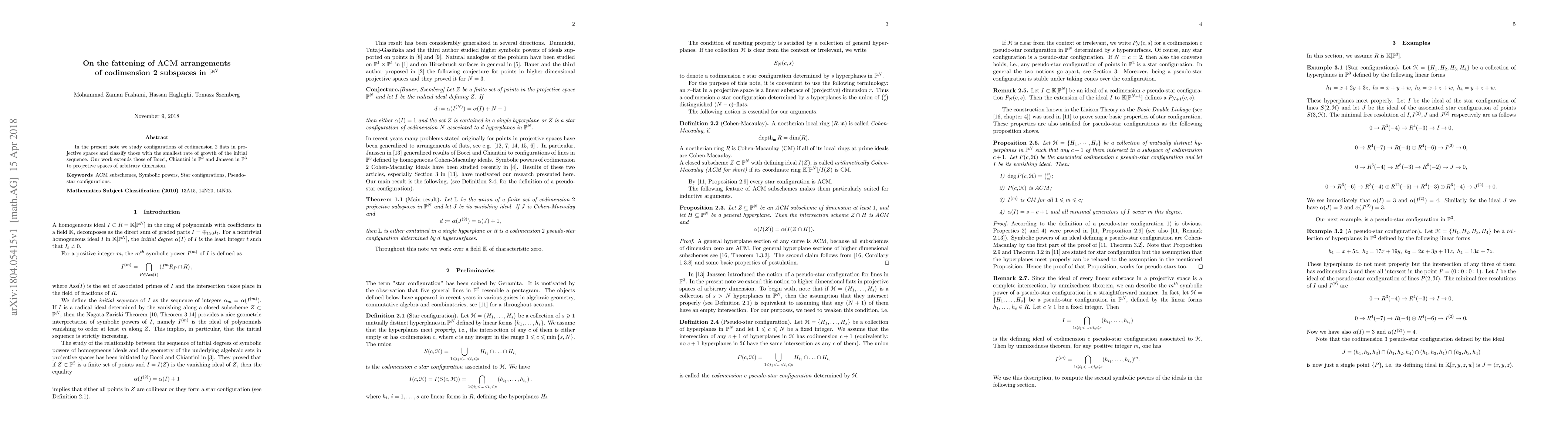 In the present note we study configurations of codimension 2 flats in projective spaces and classify those with the smallest rate of growth of the initial sequence. Our work extends those of Bocci, Chiantini in P^2 and Janssen in P^3 to projective spaces of arbitrary dimension.