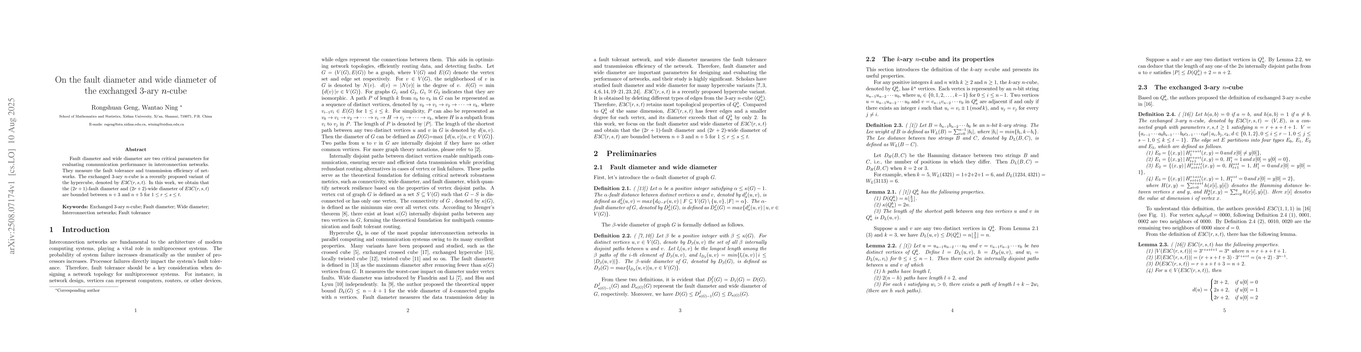 The paper presents a detailed analysis of the E3C(r,s,t) network, providing bounds for its fault diameter and wide diameter, which is a technical contribution to the field of interconnection networks.