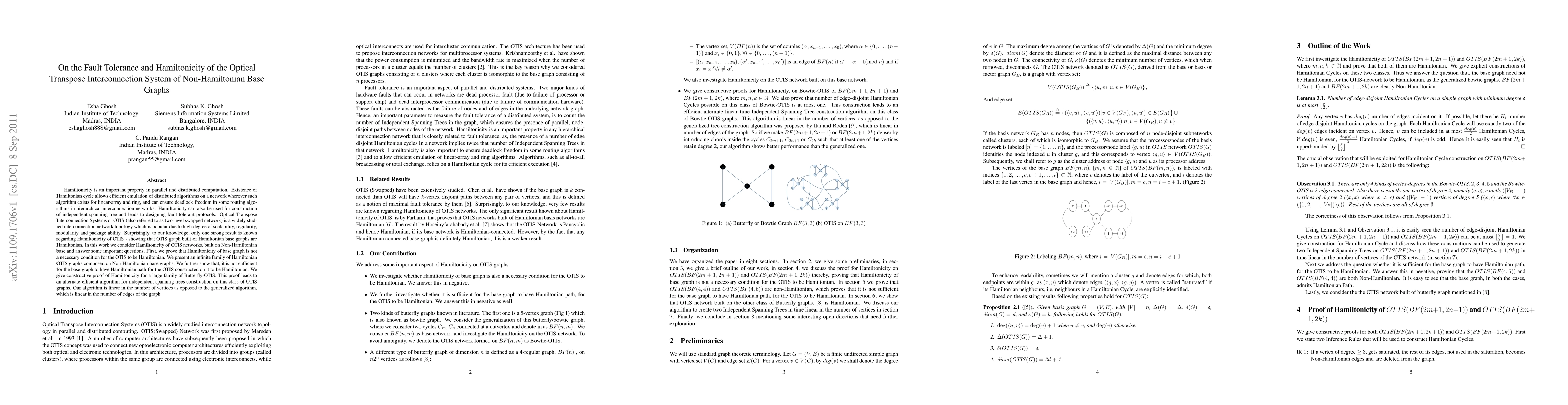 This paper investigates the Hamiltonicity of Optical Transpose Interconnection Systems (OTIS) constructed from non-Hamiltonian base graphs, demonstrating that Hamiltonicity of the base graph is not necessary for OTIS to be Hamiltonian. It presents an infinite family of Hamiltonian OTIS graphs built on non-Hamiltonian bases and introduces an efficient linear algorithm for constructing independent spanning trees for a large class of Butterfly-OTIS.