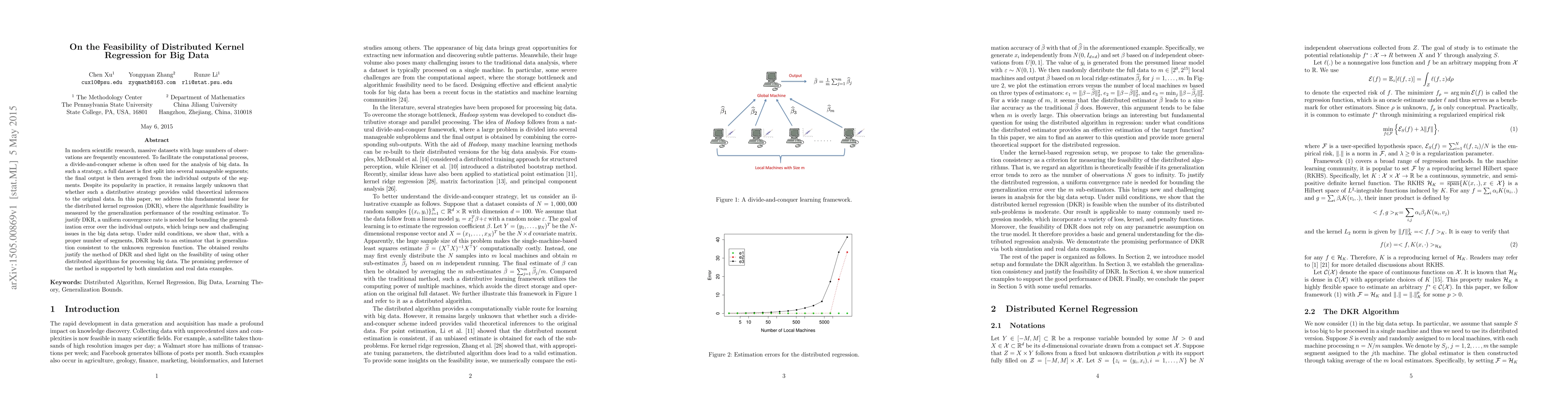 The paper investigates the feasibility of Distributed Kernel Regression (DKR) for big data using a divide-and-conquer strategy. It focuses on the generalization performance of the resulting estimator to justify DKR under mild conditions.