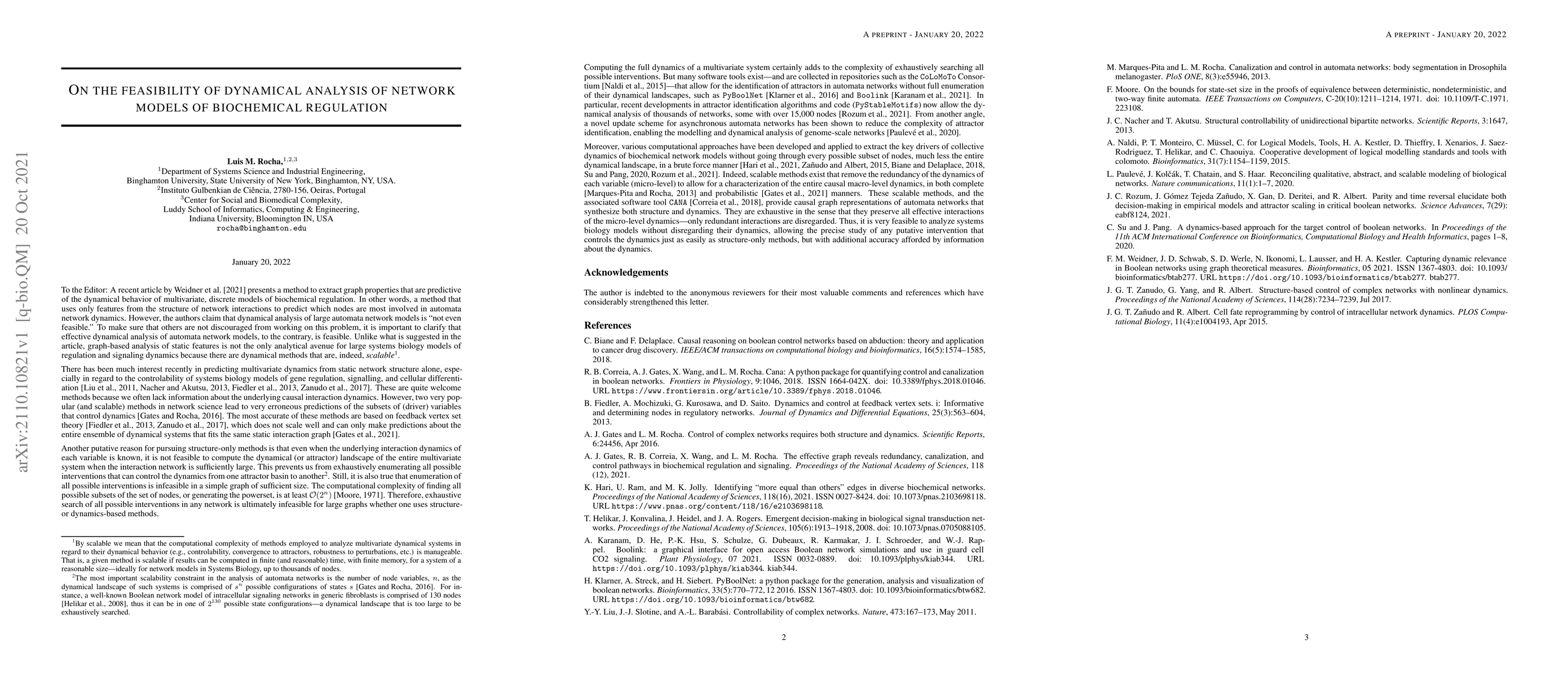 This paper argues that contrary to a recent claim, dynamical analysis of large network models of biochemical regulation is feasible, emphasizing the availability of scalable dynamical methods beyond static graph-based analysis.