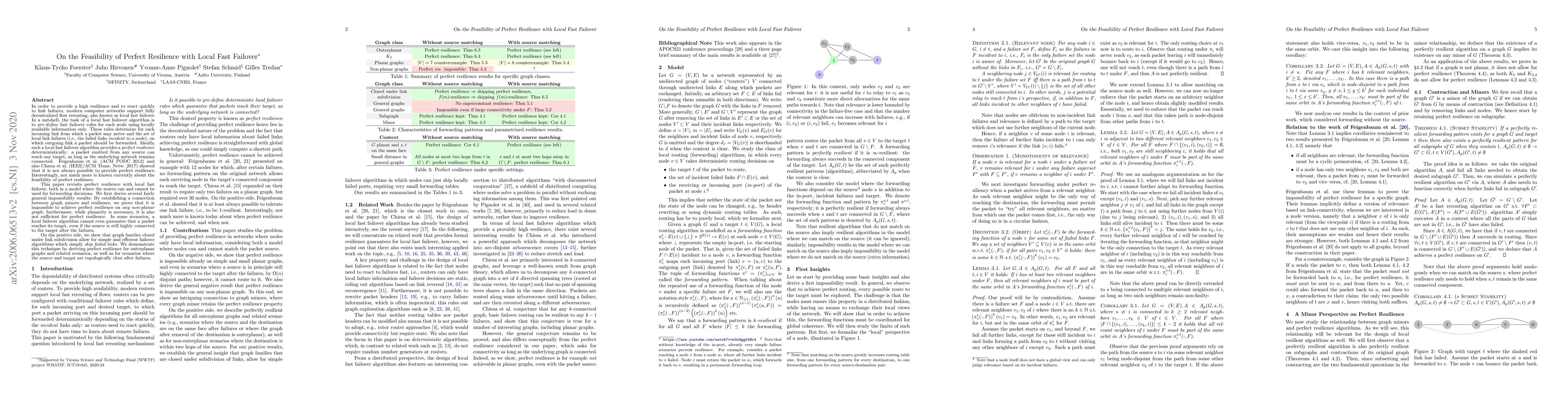 In order to provide a high resilience and to react quickly to link failures, modern computer networks support fully decentralized flow rerouting, also known as local fast failover. In a nutshell, the task of a local fast failover algorithm is to pre-define fast failover rules for each node using locally available information only. These rules determine for each incoming link from which a packet may arrive and the set of local link failures (i.e., the failed links incident to a node), on which outgoing link a packet should be forwarded. Ideally, such a local fast failover algorithm provides a perfect resilience deterministically: a packet emitted from any source can reach any target, as long as the underlying network remains connected. Feigenbaum et al. (ACM PODC 2012) and also Chiesa et al. (IEEE/ACM Trans. Netw. 2017) showed that it is not always possible to provide perfect resilience. Interestingly, not much more is known currently about the feasibility of perfect resilience. This paper revisits perfect resilience with local fast failover, both in a model where the source can and cannot be used for forwarding decisions. We first derive several fairly general impossibility results: By establishing a connection between graph minors and resilience, we prove that it is impossible to achieve perfect resilience on any non-planar graph; furthermore, while planarity is necessary, it is also not sufficient for perfect resilience. On the positive side, we show that graph families closed under link subdivision allow for simple and efficient failover algorithms which simply skip failed links. We demonstrate this technique by deriving perfect resilience for outerplanar graphs and related scenarios, as well as for scenarios where the source and target are topologically close after failures.