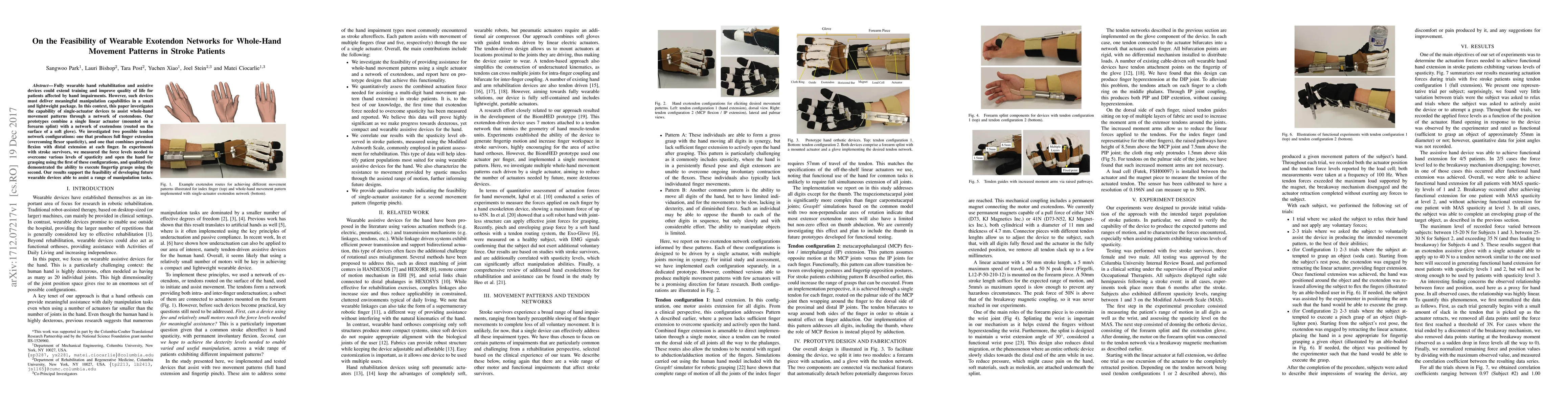 This paper explores the potential of wearable exotendon networks to assist whole-hand movement patterns in stroke patients, demonstrating two configurations that either extend fingers or combine proximal and distal finger movements. Experiments show promising results in overcoming spasticity and enabling grasping, supporting the feasibility of such assistive devices.