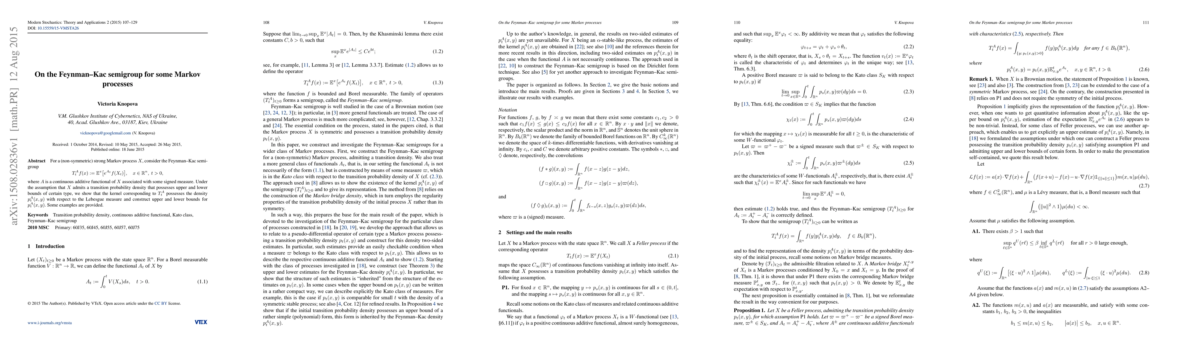 For a (non-symmetric) strong Markov process $X$, consider the Feynman--Kac semigroup \[T_t^Af(x):=\mathbb {E}^x\bigl[e^{A_t}f(X_t)\bigr],\quad x\in {\mathbb {R}^n}, t>0,\] where $A$ is a continuous additive functional of $X$ associated with some signed measure. Under the assumption that $X$ admits a transition probability density that possesses upper and lower bounds of certain type, we show that the kernel corresponding to $T_t^A$ possesses the density $p_t^A(x,y)$ with respect to the Lebesgue measure and construct upper and lower bounds for $p_t^A(x,y)$. Some examples are provided.