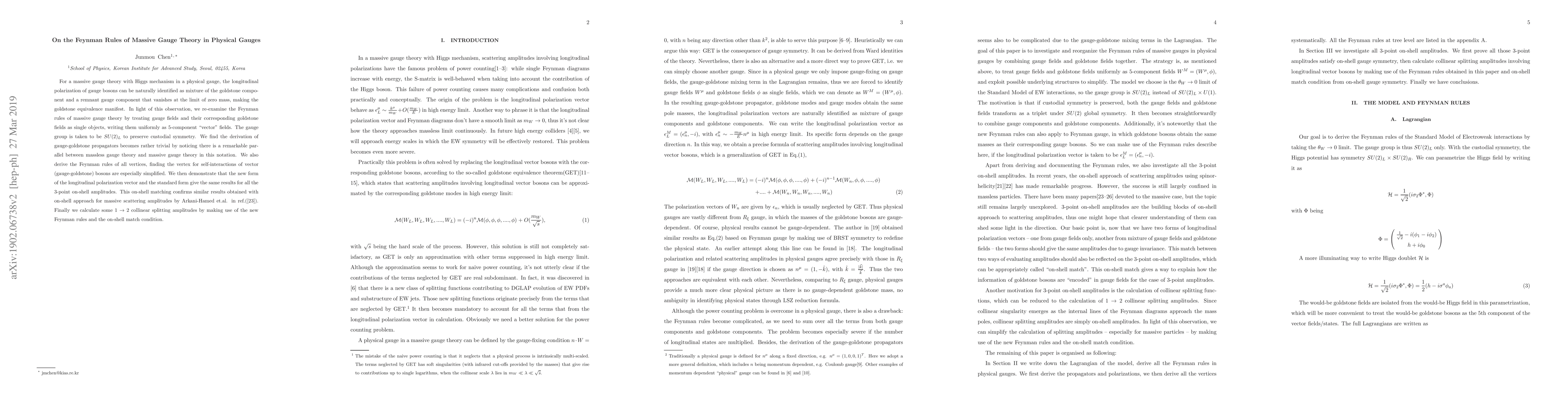 This paper re-examines the Feynman rules for massive gauge theory in physical gauges, identifying longitudinal gauge bosons as a mixture of Goldstone and gauge components. It simplifies the derivation of gauge-Goldstone propagators and Feynman rules by treating gauge and Goldstone fields as 5-component vector fields, confirming the equivalence of the new and standard longitudinal polarization vectors through on-shell matching.