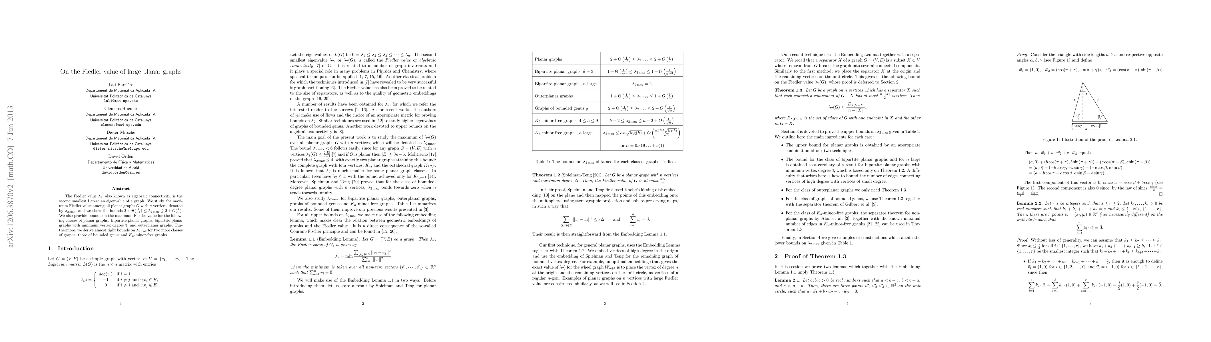 The Fiedler value $\lambda_2$, also known as algebraic connectivity, is the second smallest Laplacian eigenvalue of a graph. We study the maximum Fiedler value among all planar graphs $G$ with $n$ vertices, denoted by $\lambda_{2\max}$, and we show the bounds $2+\Theta(\frac{1}{n^2}) \leq \lambda_{2\max} \leq 2+O(\frac{1}{n})$. We also provide bounds on the maximum Fiedler value for the following classes of planar graphs: Bipartite planar graphs, bipartite planar graphs with minimum vertex degree~3, and outerplanar graphs. Furthermore, we derive almost tight bounds on $\lambda_{2\max}$ for two more classes of graphs, those of bounded genus and $K_h$-minor-free graphs.