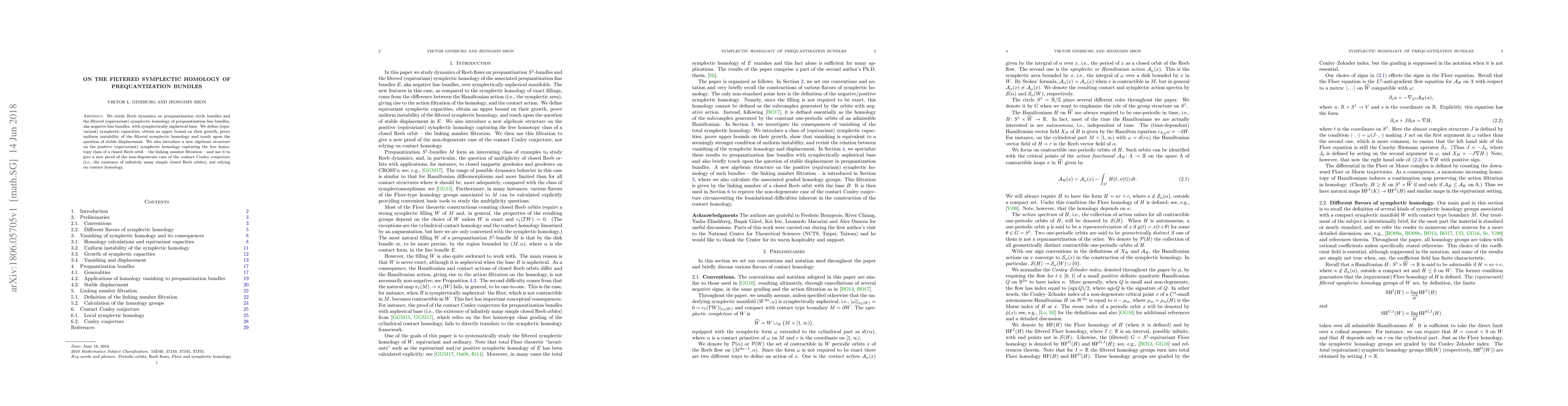 This paper explores Reeb dynamics on prequantization bundles, defining equivariant symplectic capacities and proving uniform instability of filtered symplectic homology. It introduces a linking number filtration to prove the non-degenerate case of the contact Conley conjecture without using contact homology.