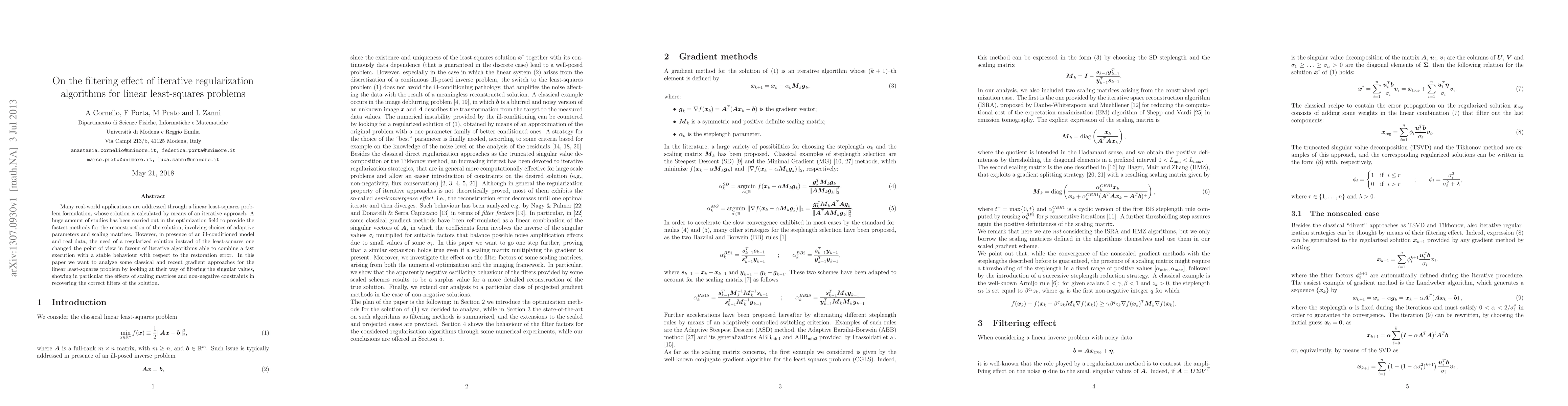 This paper examines iterative regularization algorithms for solving linear least-squares problems, focusing on their filtering effects on singular values. It highlights the role of scaling matrices and non-negative constraints in achieving stable and accurate solutions, especially in ill-conditioned models.