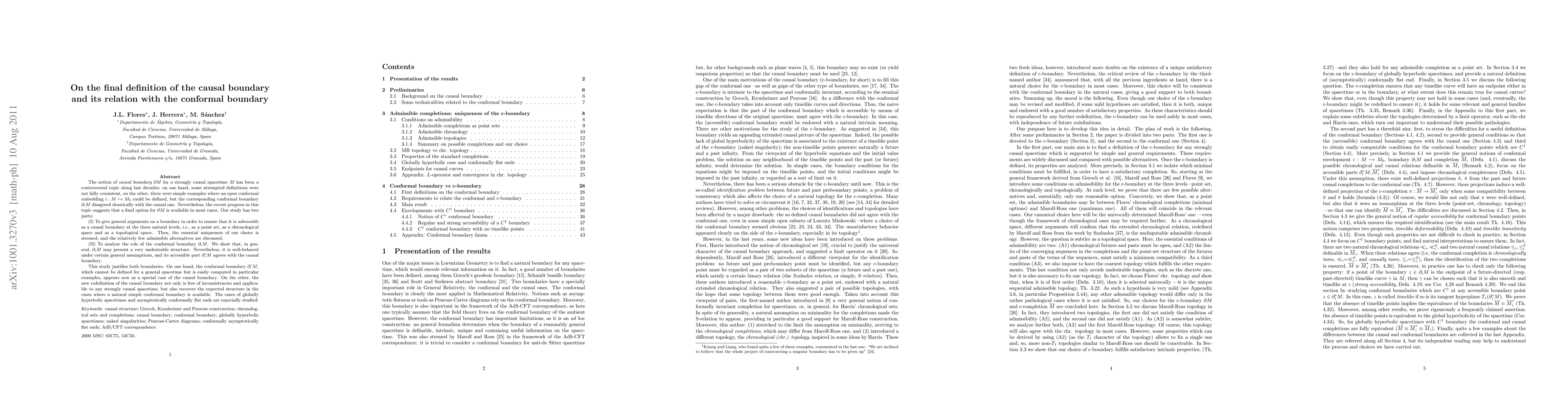 This paper proposes a definitive definition for the causal boundary $\partial M$ in strongly causal spacetimes, ensuring its consistency at multiple levels. It also examines the conformal boundary $\partial_{i}M$, showing that while it can have undesirable structures, it aligns with the causal boundary under certain conditions, thus justifying both boundaries.
