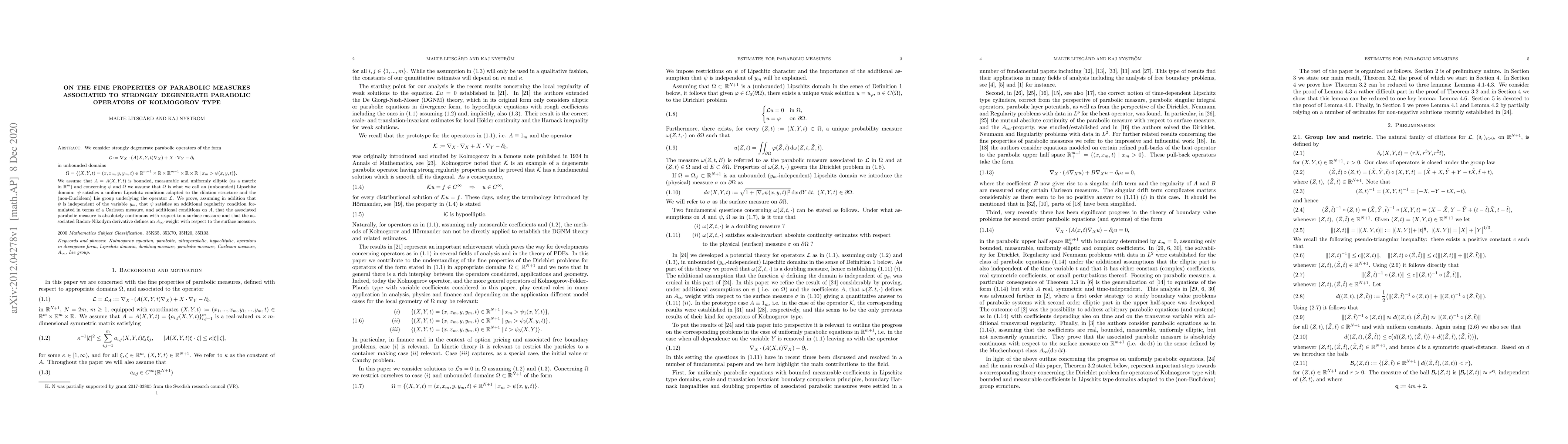 This paper studies parabolic measures associated with strongly degenerate parabolic operators in unbounded domains, showing they are absolutely continuous with respect to surface measure and define an $A_ty$-weight.