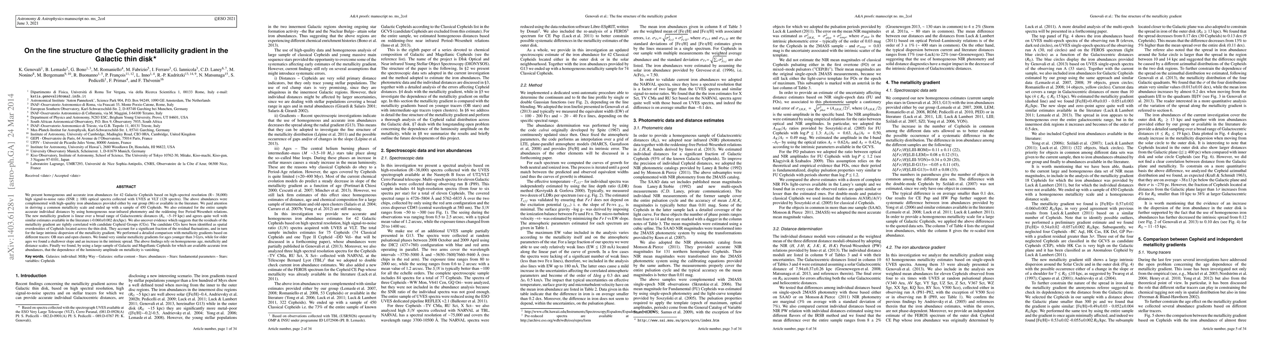 This paper presents a detailed study of the metallicity gradient in the Galactic thin disk using 42 Cepheids with high-resolution spectra, revealing a linear gradient of -0.060±0.002 dex/kpc. It also finds that candidate Cepheid Groups contribute to the gradient's intrinsic dispersion and compares the gradient with other stellar tracers, noting differences in older populations.