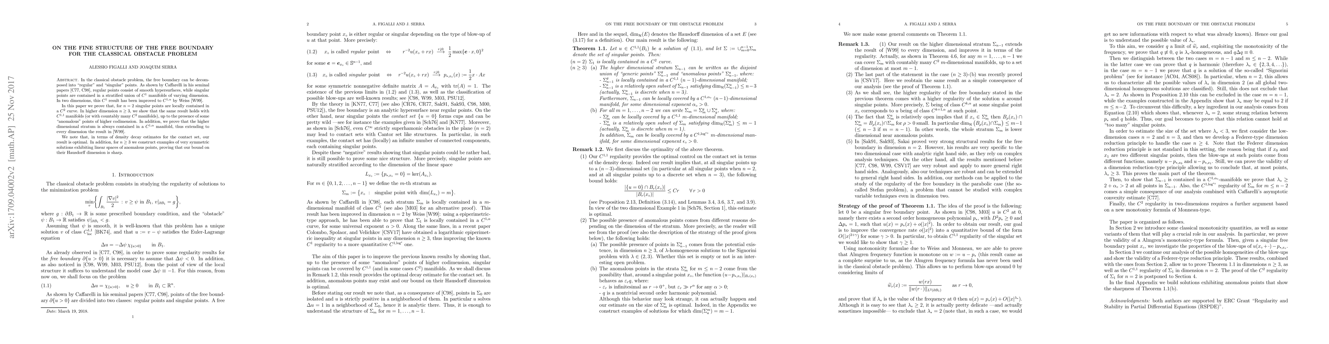 In the classical obstacle problem, the free boundary can be decomposed into "regular" and "singular" points. As shown by Caffarelli in his seminal papers \cite{C77,C98}, regular points consist of smooth hypersurfaces, while singular points are contained in a stratified union of $C^1$ manifolds of varying dimension. In two dimensions, this $C^1$ result has been improved to $C^{1,\alpha}$ by Weiss \cite{W99}. In this paper we prove that, for $n=2$ singular points are locally contained in a $C^2$ curve. In higher dimension $n\ge 3$, we show that the same result holds with $C^{1,1}$ manifolds (or with countably many $C^2$ manifolds), up to the presence of some "anomalous" points of higher codimension. In addition, we prove that the higher dimensional stratum is always contained in a $C^{1,\alpha}$ manifold, thus extending to every dimension the result in \cite{W99}. We note that, in terms of density decay estimates for the contact set, our result is optimal. In addition, for $n\ge3$ we construct examples of very symmetric solutions exhibiting linear spaces of anomalous points, proving that our bound on their Hausdorff dimension is sharp.