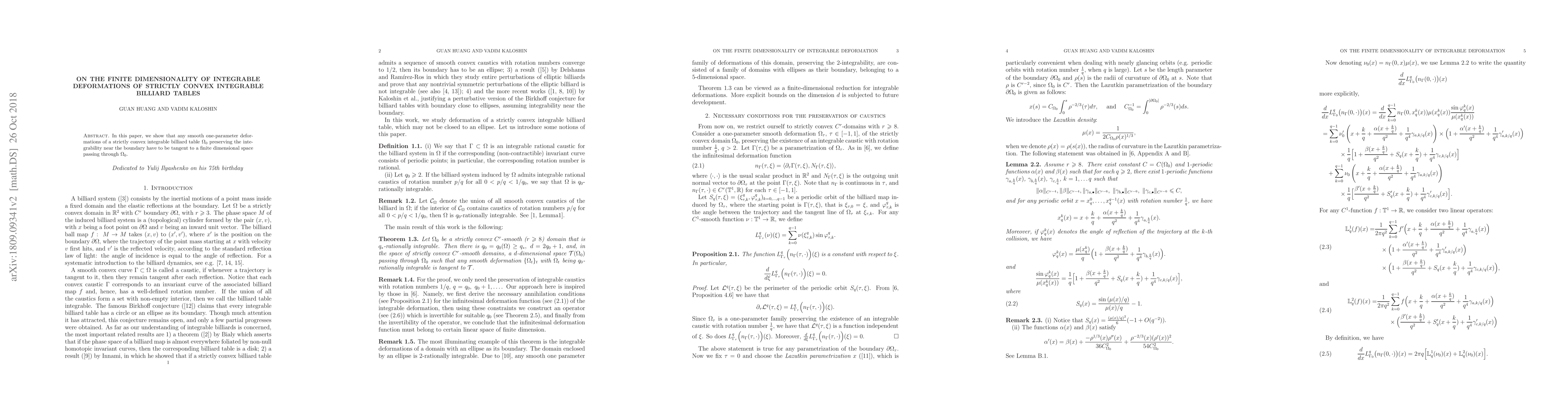 Summary: This paper demonstrates that any smooth one-parameter deformations of a strictly convex integrable billiard table that maintain integrability near the boundary must be tangent to a finite-dimensional space containing the original table.