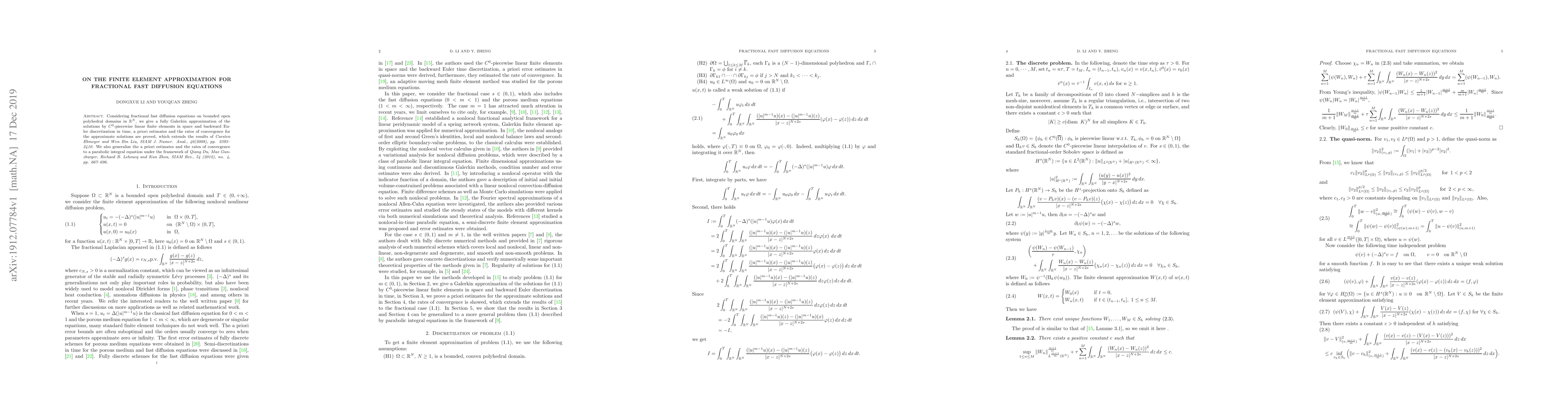 Considering fractional fast diffusion equations on bounded open polyhedral domains in $\mathbb{R}^N$, we give a fully Galerkin approximation of the solutions by $C^0$-piecewise linear finite elements in space and backward Euler discretization in time, a priori estimates and the rates of convergence for the approximate solutions are proved, which extends the results of \emph{Carsten Ebmeyer and Wen Bin Liu, SIAM J. Numer. Anal., 46(2008), pp. 2393--2410}. We also generalize the a priori estimates and the rates of convergence to a parabolic integral equation under the framework of \emph{Qiang Du, Max Gunzburger, Richaed B. Lehoucq and Kun Zhou, SIAM Rev., 54 (2012), no. 4, pp. 667--696.}