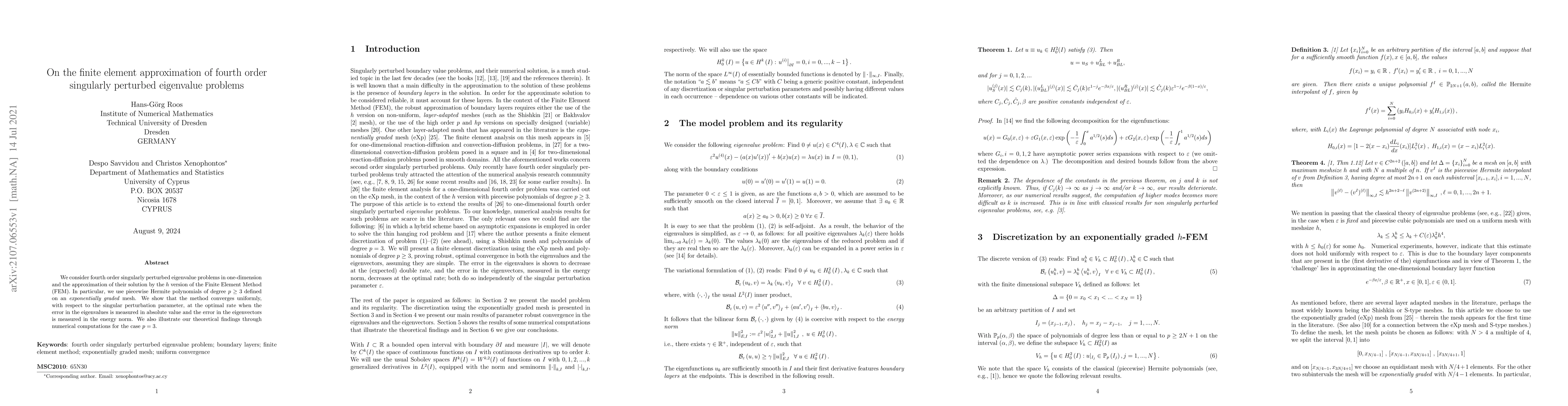 This paper investigates the $h$ version of the Finite Element Method (FEM) for solving fourth order singularly perturbed eigenvalue problems, using piecewise Hermite polynomials on an exponentially graded mesh. It demonstrates uniform convergence at the optimal rate for both eigenvalues and eigenvectors, supported by numerical computations for $p=3$.