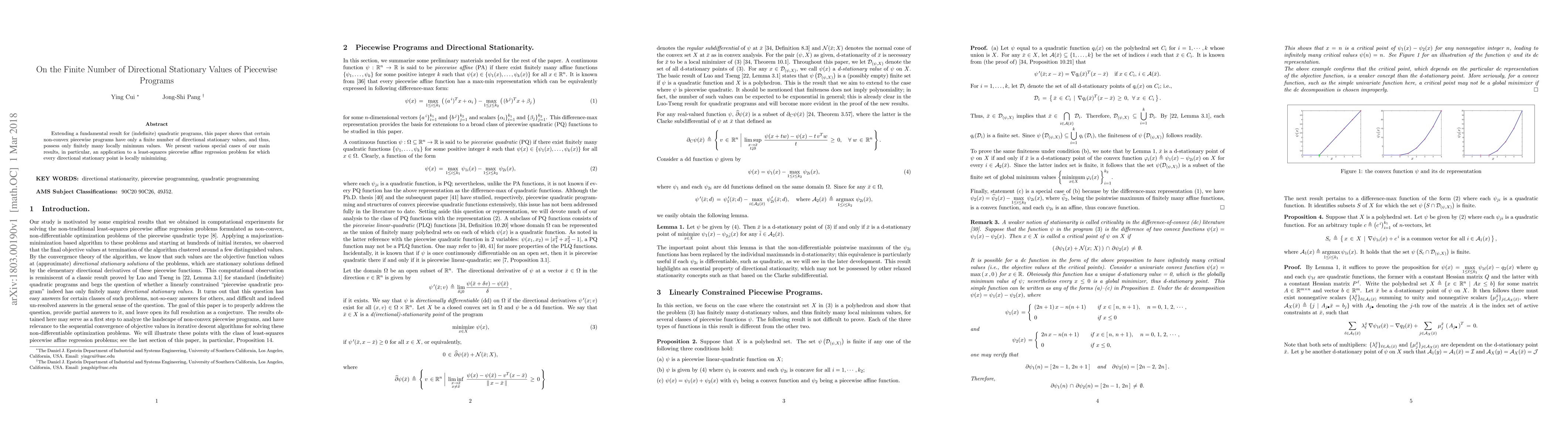 Extending a fundamental result for (indefinite) quadratic programs, this paper shows that certain non-convex piecewise programs have only a finite number of directional stationary values, and thus, possess only finitely many locally minimum values. We present various special cases of our main results, in particular, an application to a least-squares piecewise affine regression problem for which every directional stationary point is locally minimizing.
