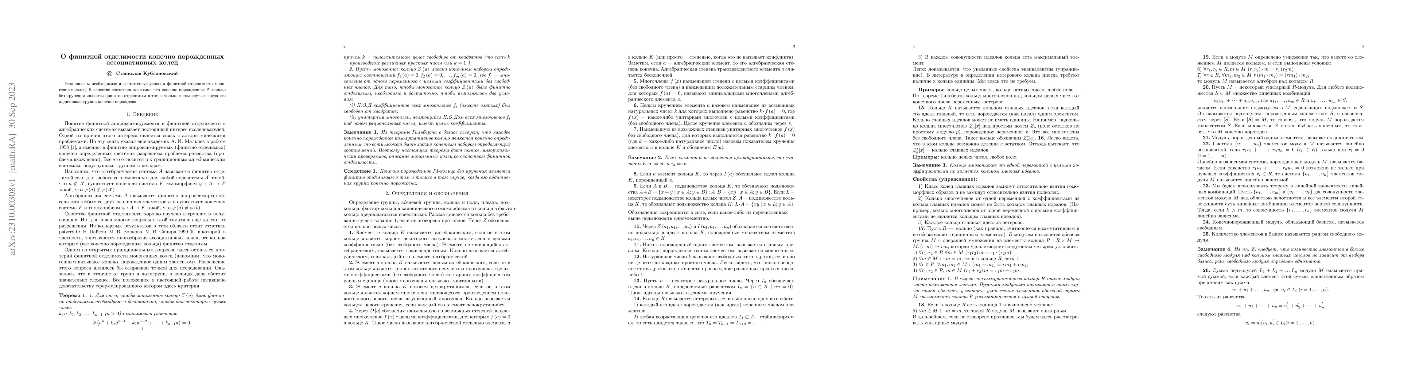 Summary: This paper establishes necessary and sufficient conditions for the finite separability of monogenic rings, proving that a finitely generated torsion-free PI-ring is finitely separable if its additive group is finitely generated.