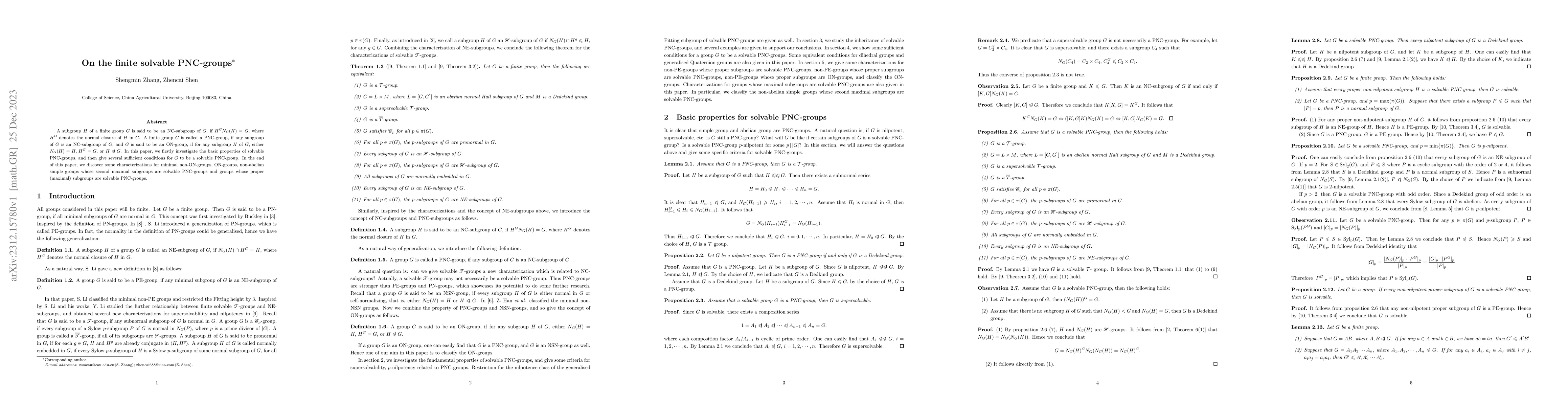 This paper explores the fundamental properties of solvable PNC-groups and provides conditions for such groups. It also characterizes minimal non-ON-groups, ON-groups, and groups with specific subgroup structures involving solvable PNC-subgroups.