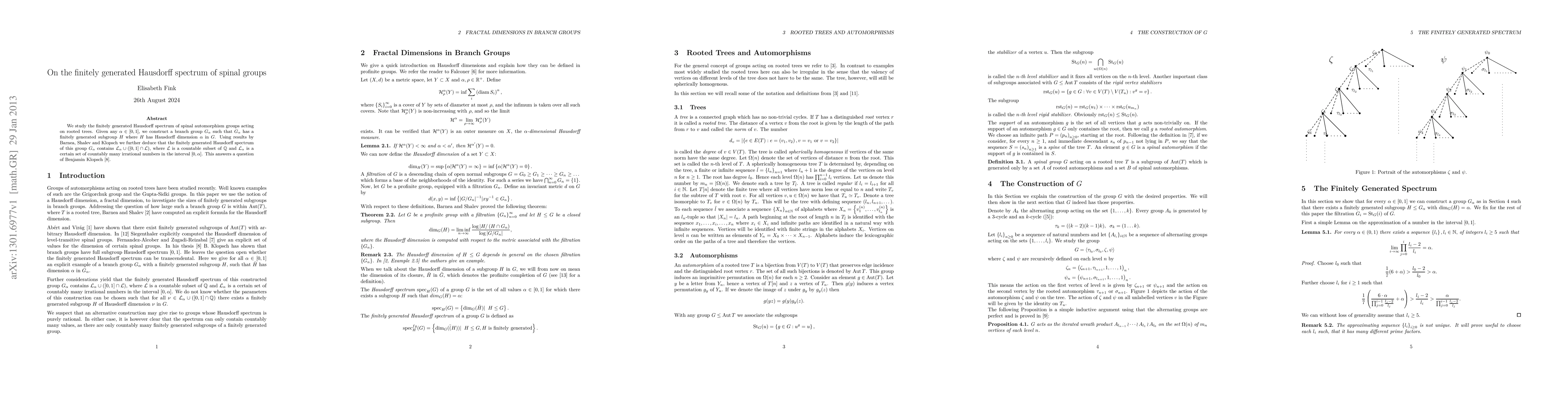 We study the finitely generated Hausdorff spectrum of spinal automorphism groups acting on rooted trees. Given any $\alpha \in [0,1]$, we construct a branch group $G_\alpha$ such that $G_\alpha$ has a finitely generated subgroup $H$ where $H$ has Hausdorff dimension $\alpha$ in $G$. Using results by Barnea, Shalev and Klopsch we further deduce that the finitely generated Hausdorff spectrum of this group $G_\alpha$ contains $\mathcal{L}_\alpha \cup ([0, 1] \cap \mathcal{L})$, where $\mathcal{L}$ is a countable subset of $\mathbb{Q}$ and $\mathcal{L}_\alpha$ is a certain set of countably many irrational numbers in the interval $[0,\alpha]$. This answers a question of Benjamin Klopsch.