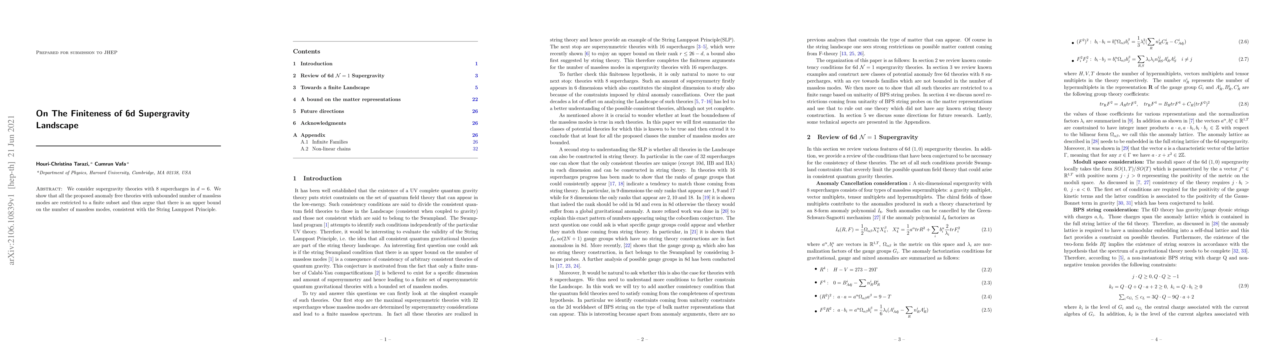 We consider supergravity theories with 8 supercharges in $d=6$. We show that all the proposed anomaly free theories with unbounded number of massless modes are restricted to a finite subset and thus argue that there is an upper bound on the number of massless modes, consistent with the String Lamppost Principle.