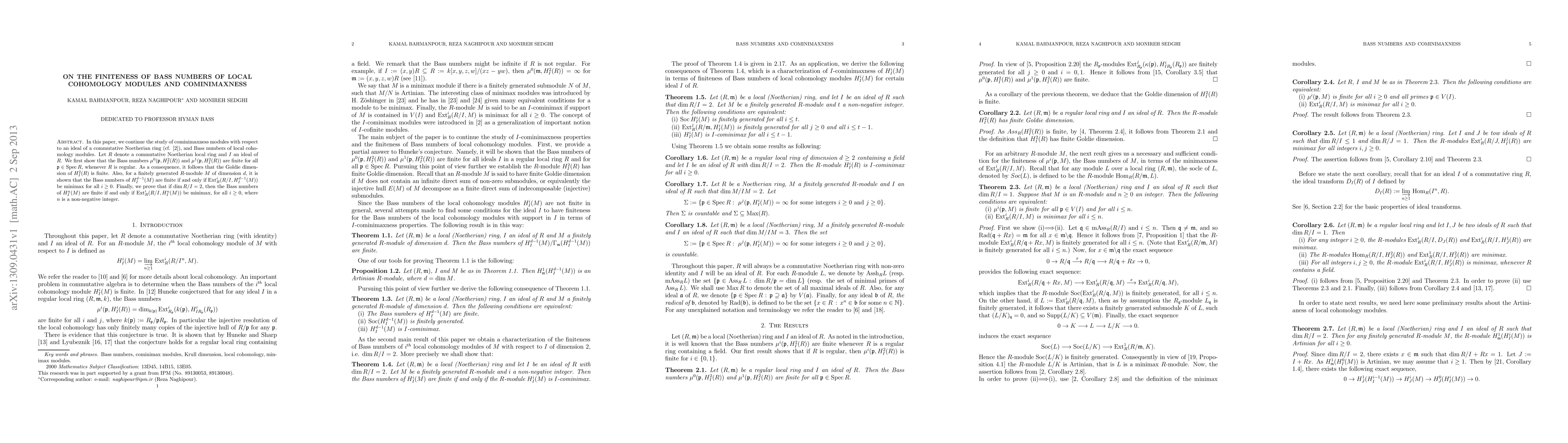 This paper investigates the finiteness of Bass numbers for local cohomology modules in commutative Noetherian local rings, proving that these numbers are finite for regular rings and under specific conditions on modules and their dimensions. It also establishes connections between these numbers and the minimaxness of Ext modules.