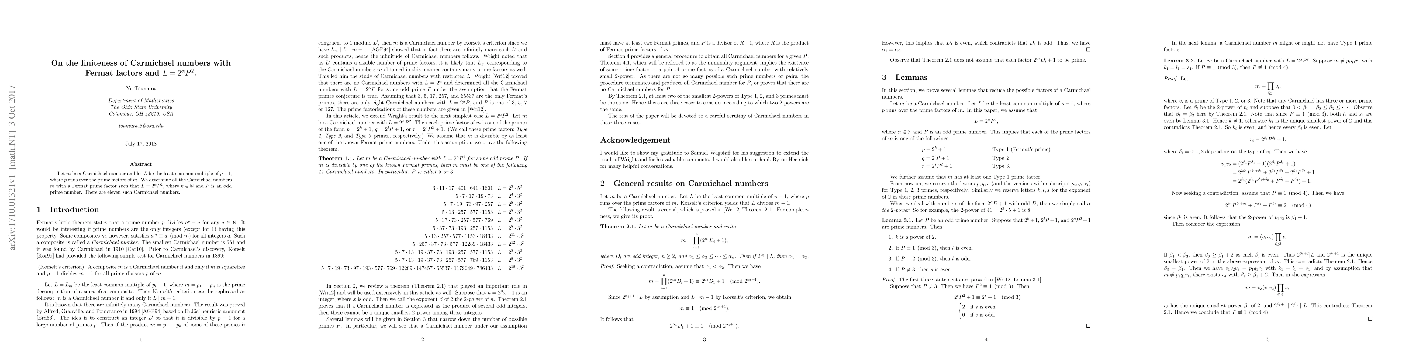 This paper identifies all Carmichael numbers with a Fermat prime factor where the least common multiple of the differences of their prime factors minus one equals $2^{\alpha}P^2$, revealing a total of eleven such numbers.