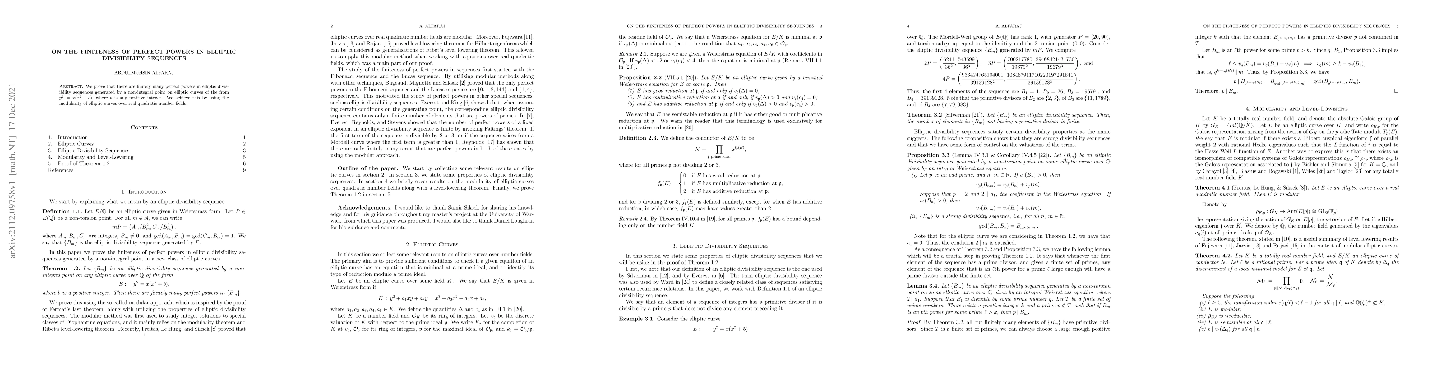 This paper proves that elliptic divisibility sequences from non-integral points on specific elliptic curves contain only finitely many perfect powers, leveraging the modularity of these curves over real quadratic number fields.