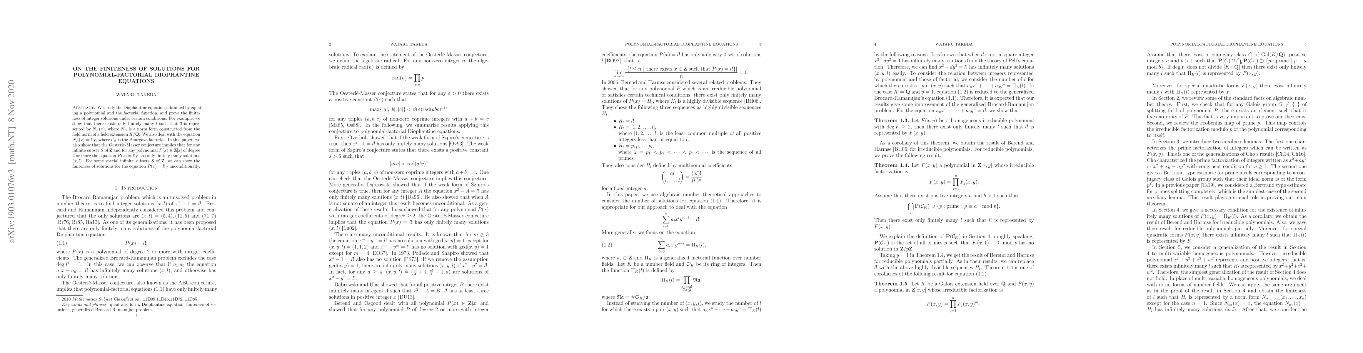 This paper proves the finiteness of integer solutions for Diophantine equations equating polynomials to factorials under specific conditions, including norm forms from field extensions and Bhargava factorials. It also demonstrates the implications of the Oesterl\'e-Masser conjecture on such equations.