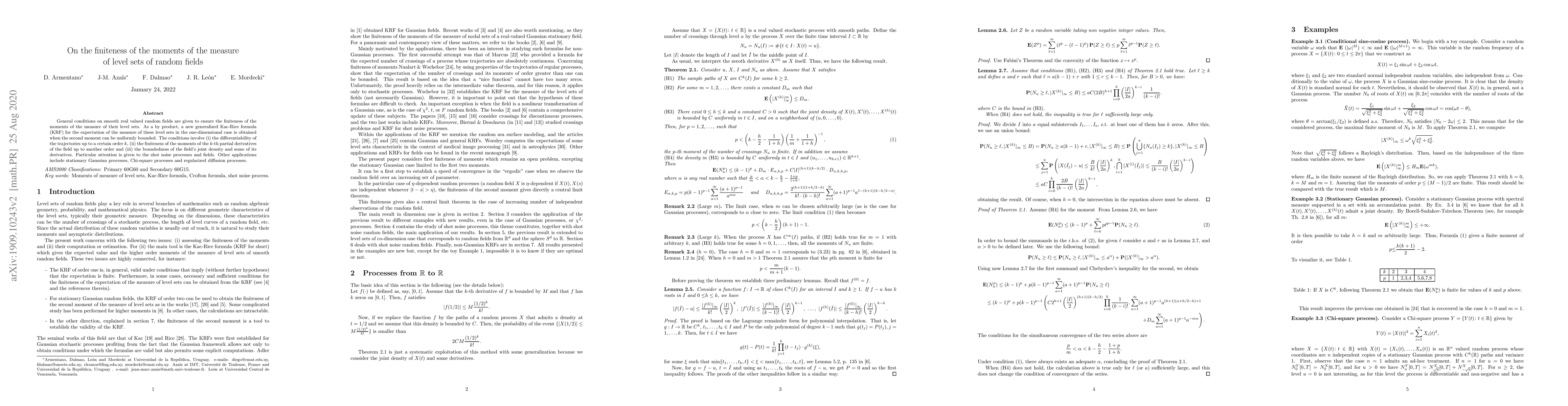 General conditions on smooth real valued random fields are given that ensure the finiteness of the moments of the measure of their level sets. As a by product a new generalized Kac-Rice formula (KRF) for the expectation of the measure of these level sets is obtained when the second moment can be uniformly bounded. The conditions involve (i) the differentiability of the trajectories up to a certain order k, (ii) the finiteness of the moments of the k-th partial derivatives of the field up to another order, (iii) the boundedness of the joint density of the field and some of its derivatives. Particular attention is given to the shot noise processes and fields. Other applications include stationary Gaussian processes, Chi-square processes and regularized diffusion processes. AMS2000 Classifications: Primary 60G60. Secondary 60G15.