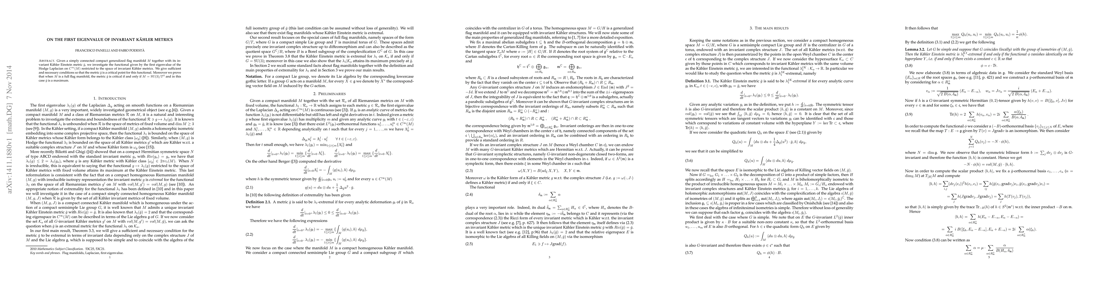 Given a simply connected compact generalized flag manifold M together with its invariant K\"ahler Einstein metric g, we investigate the functional given by the first eigenvalue of the Hodge Laplacian on smooth functions restricted to the space of invariant K\"ahler metrics. We give sufficient and necessary conditions so that the metric g is a critical point for this functional. Moreover we prove that when M is a full flag manifold, the metric g is critical if and only if M= SU(3)/T^2 and in this case g is a maximum.