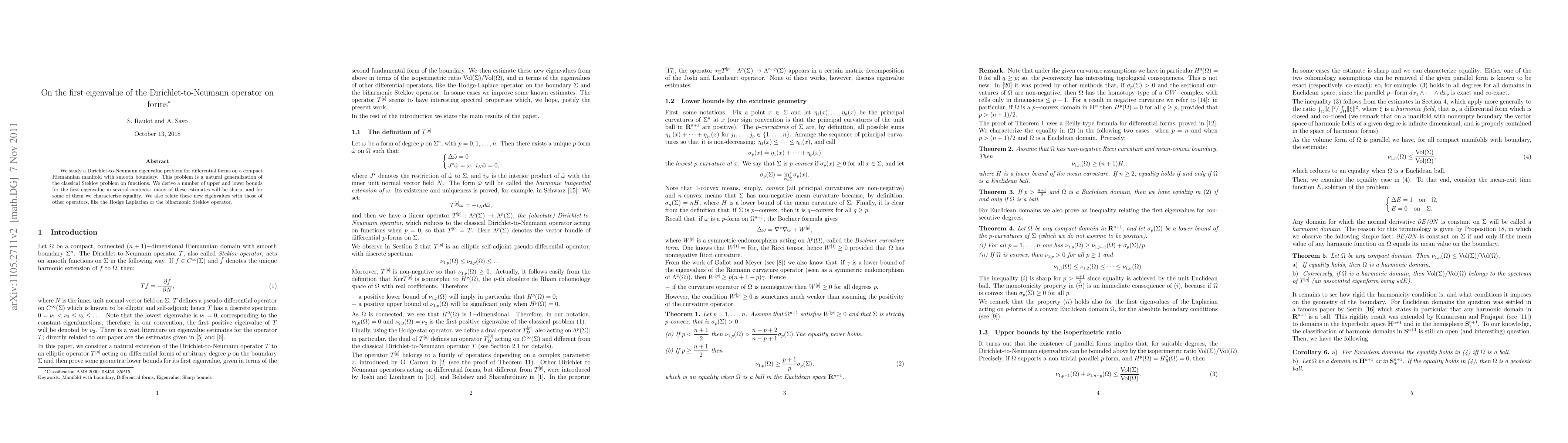 This paper investigates the Dirichlet-to-Neumann eigenvalue problem for differential forms on compact Riemannian manifolds with smooth boundaries, deriving sharp upper and lower bounds for the first eigenvalue, and relating these new eigenvalues to those of the Hodge Laplacian and biharmonic Steklov operator.