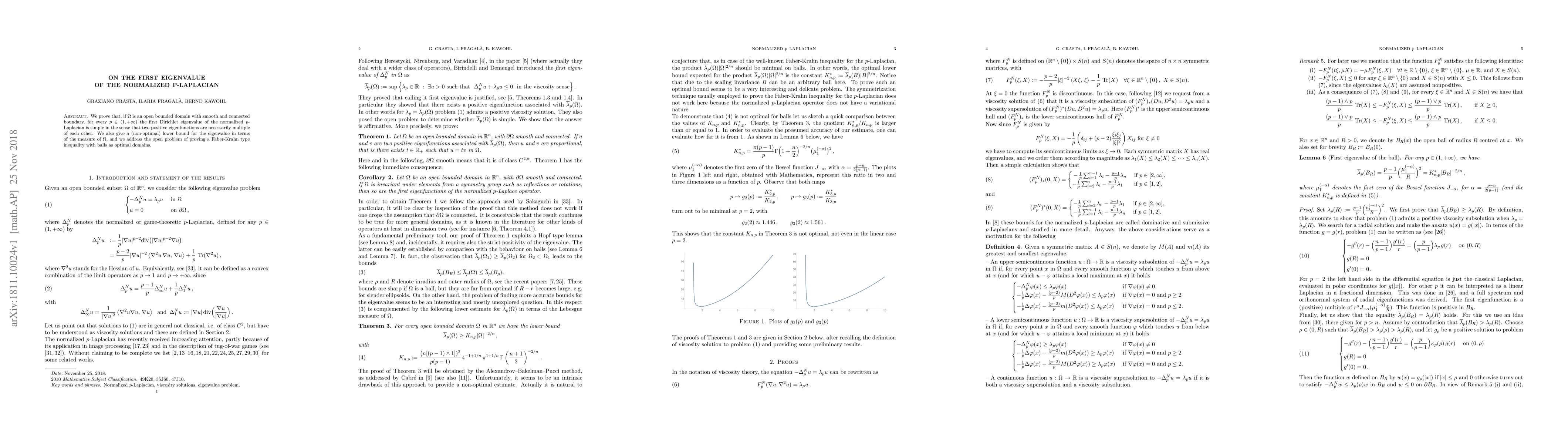 This paper proves the simplicity of the first Dirichlet eigenvalue for the normalized $p$-Laplacian in smooth, bounded domains and provides a lower bound for this eigenvalue. It also tackles the open problem of establishing a Faber-Krahn type inequality for optimal domains.