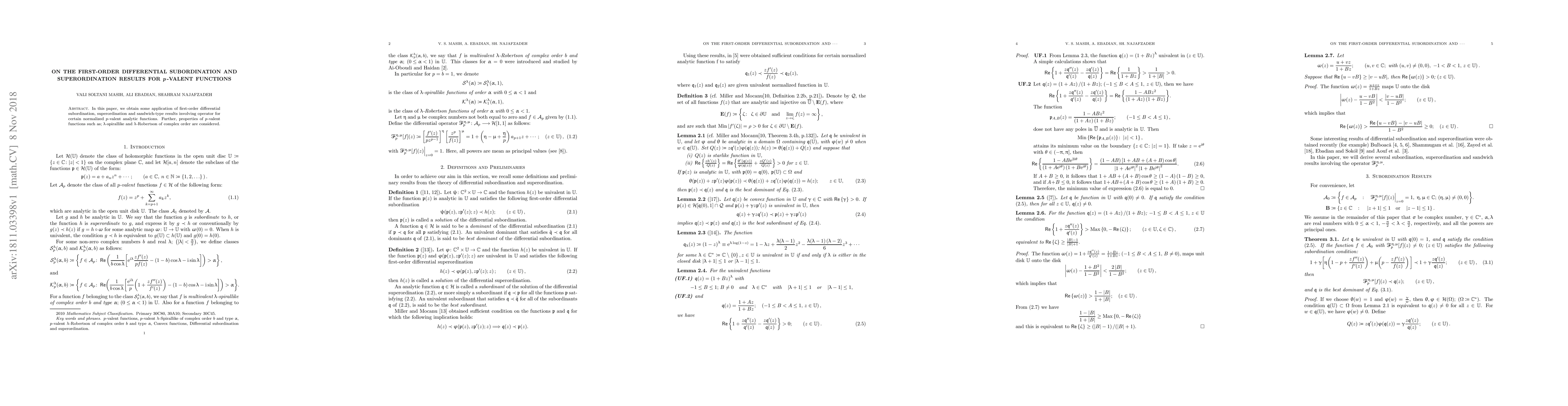 This paper explores first-order differential subordination and superordination results for $p$-valent functions, applying these to normalized $p$-valent analytic functions and examining properties like $\lambda$-spirallike and $\lambda$-Robertson of complex order.