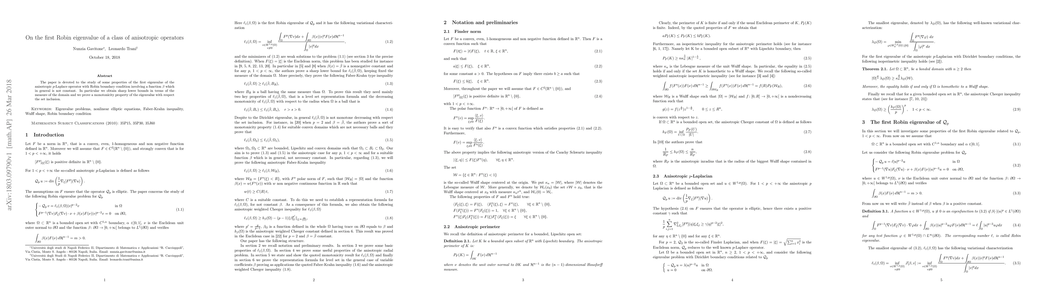 The paper investigates the first Robin eigenvalue of anisotropic $p$-Laplace operators, deriving sharp lower bounds linked to domain measure and demonstrating a monotonicity property concerning set inclusion.