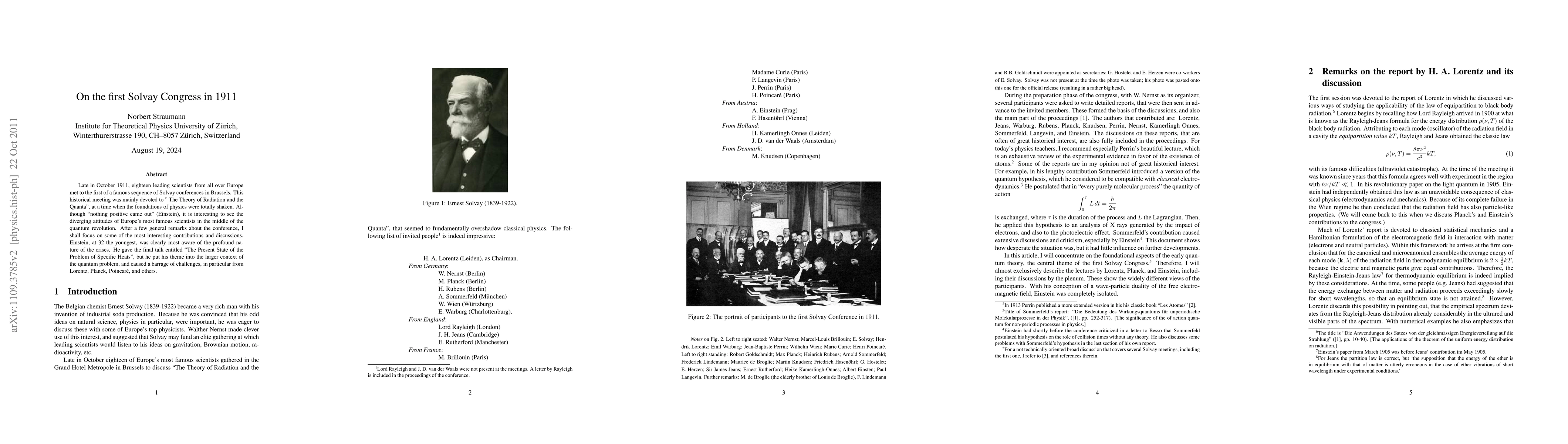 Late in October 1911, eighteen leading scientists from all over Europe met to the first of a famous sequence of Solvay conferences in Brussels. This historical meeting was mainly devoted to "The Theory of Radiation and the Quanta", at a time when the foundations of physics were totally shaken. Although "nothing positive came out" (Einstein), it is interesting to see the diverging attitudes of Europe's most famous scientists in the middle of the quantum revolution. After a few general remarks about the conference, I shall focus on some of the most interesting contributions and discussions. Einstein, at 32 the youngest, was clearly most aware of the profound nature of the crises. He gave the final talk entitled "The Present State of the Problem of Specific Heats", but he put his theme into the larger context of the quantum problem, and caused a barrage of challenges, in particular from Lorentz, Planck, Poincar\'{e}, and others.